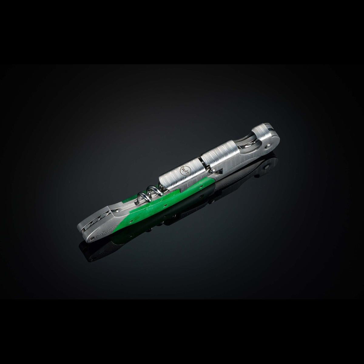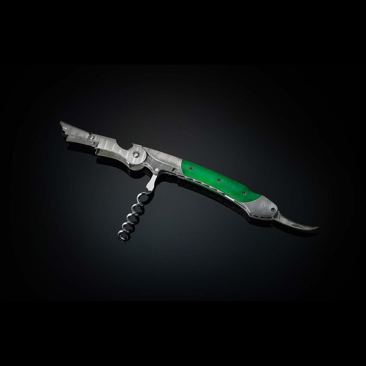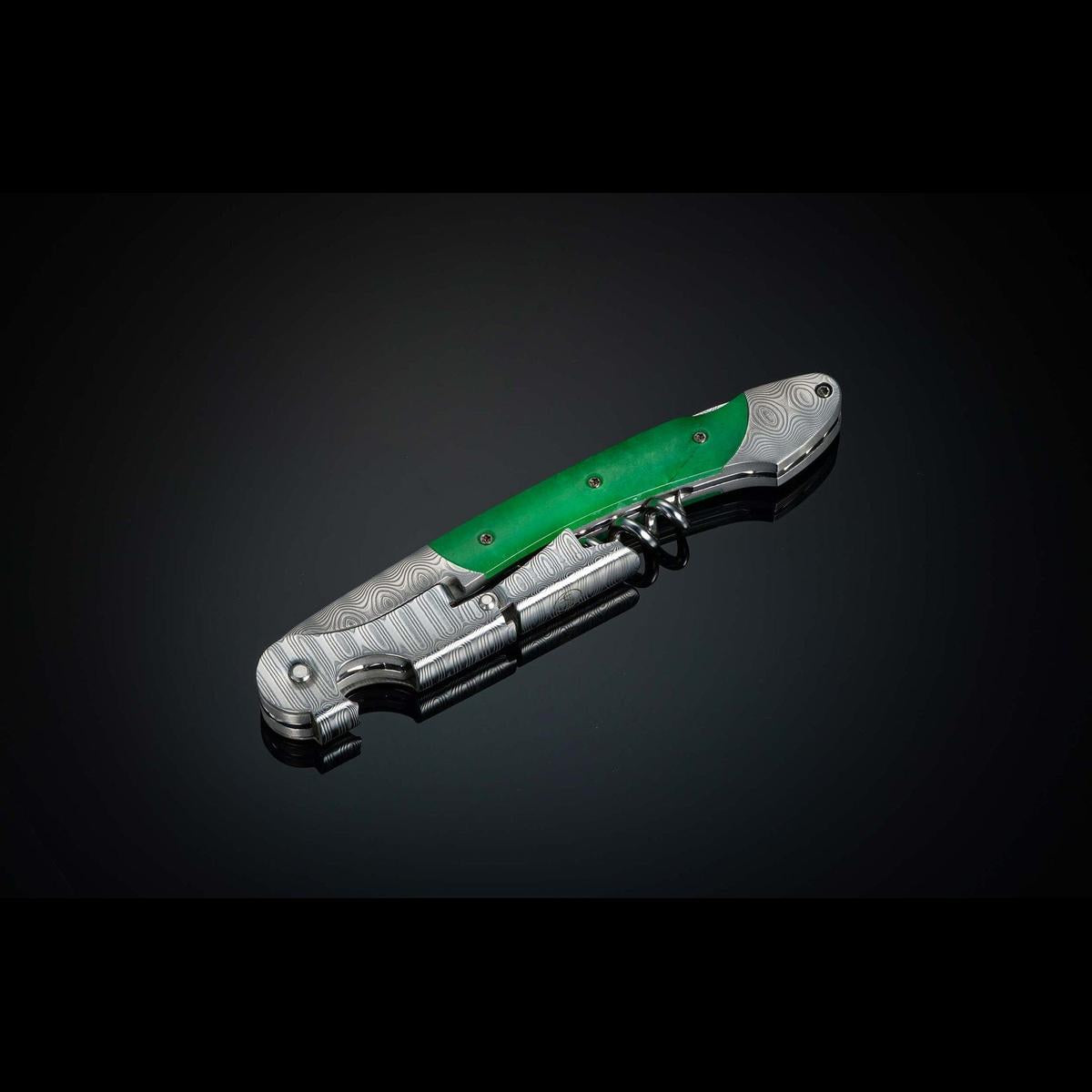 Damascus wine opener with green jade