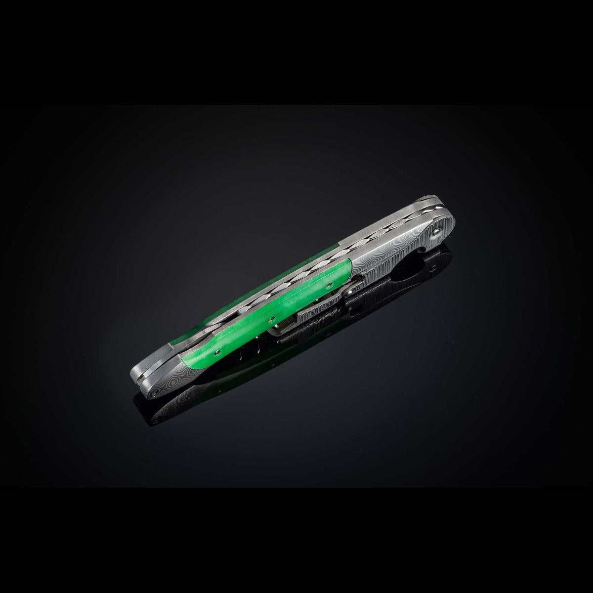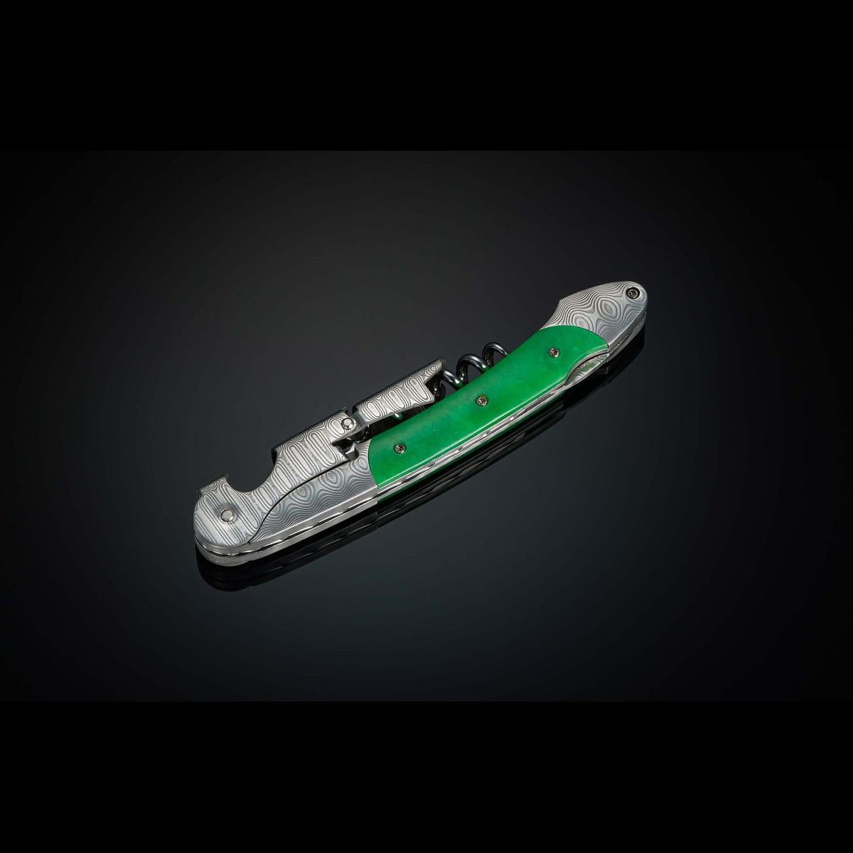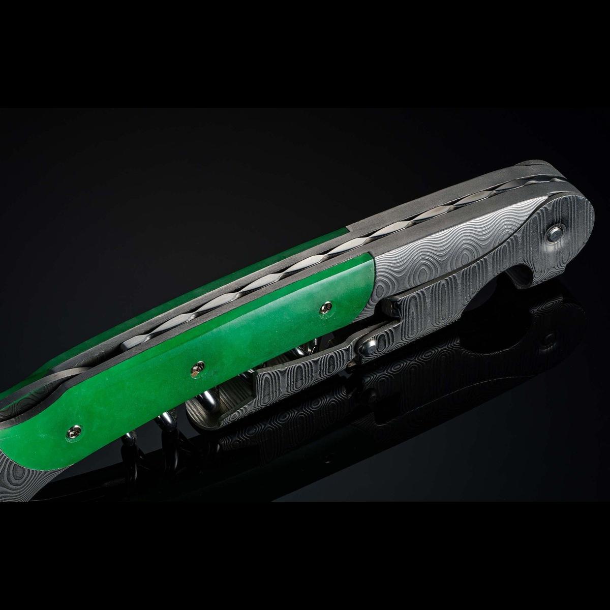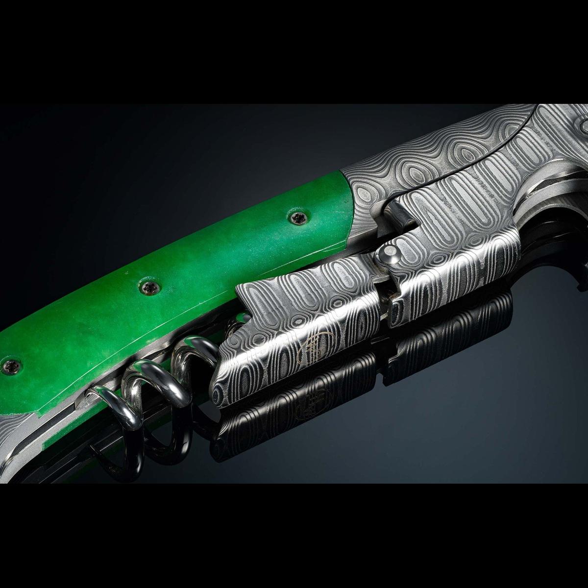 Damascus wine opener with green jade