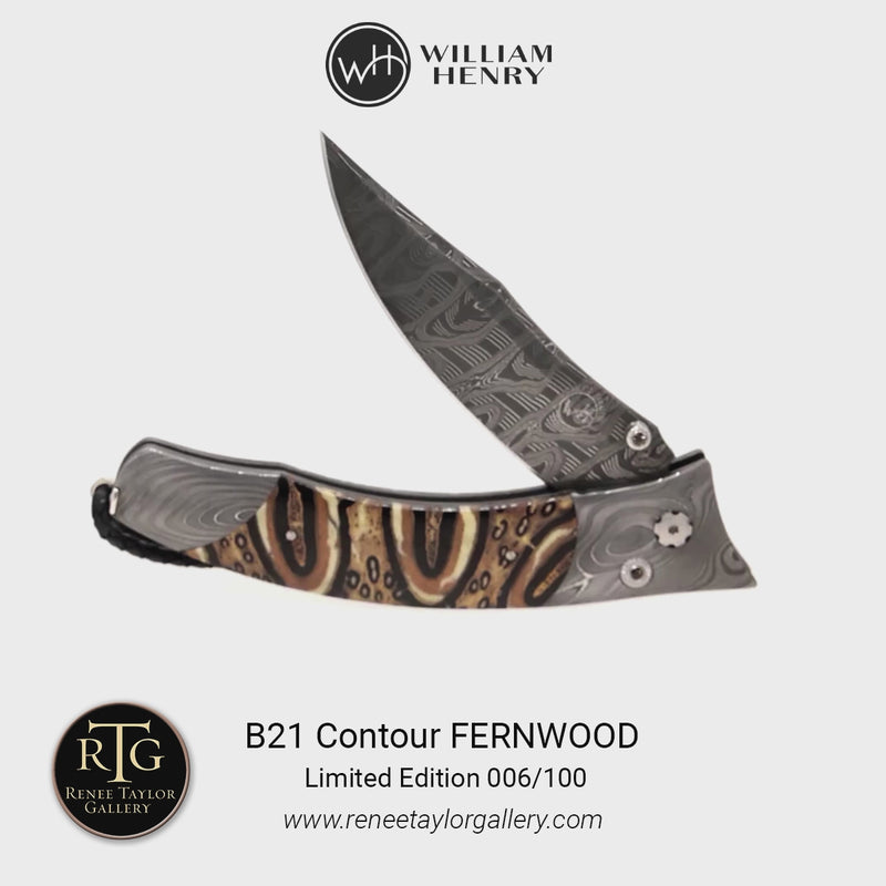 The Contour is an exquisite fusion of elegant lines, graceful curves, and exquisite materials. A bold interpretation of a timeless design, the 'Fernwood' also features some of the most exotic materials and hand-forged metals that are the hallmark of William Henry's collections; a timeless heirloom to be proudly worn and used for a lifetime before being handed-down to another generation.