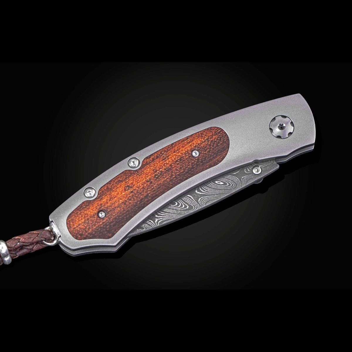 Titanium folding knife with Snakewood and hand-forged damascus