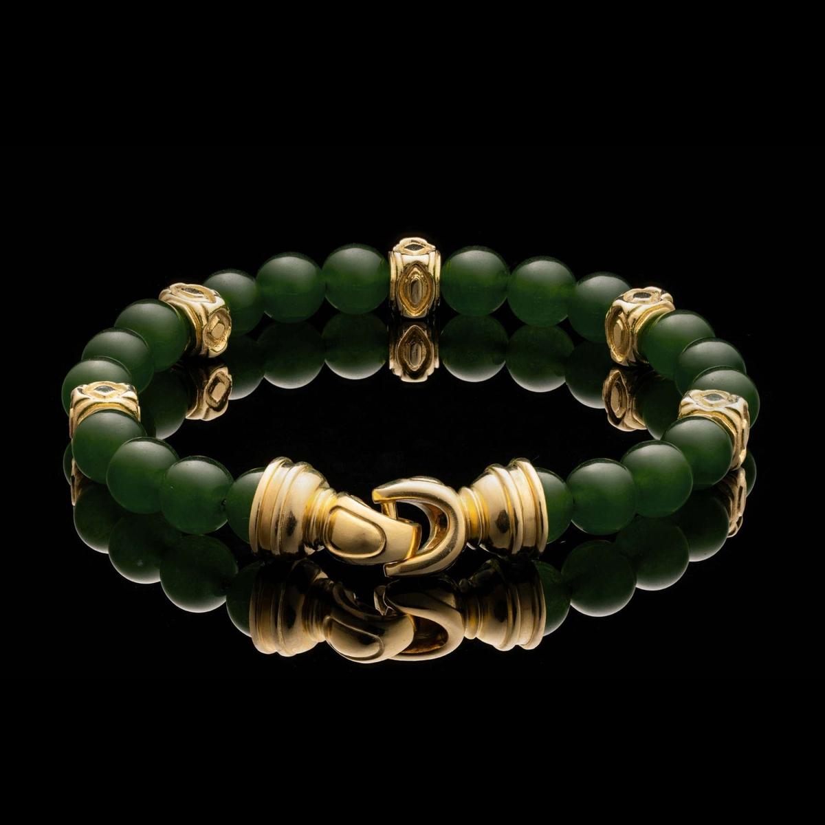 Beaded bracelet with green jade and 18K yellow gold