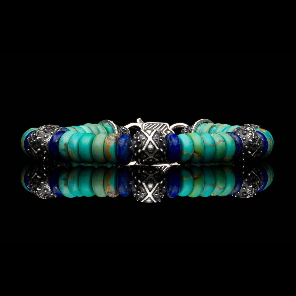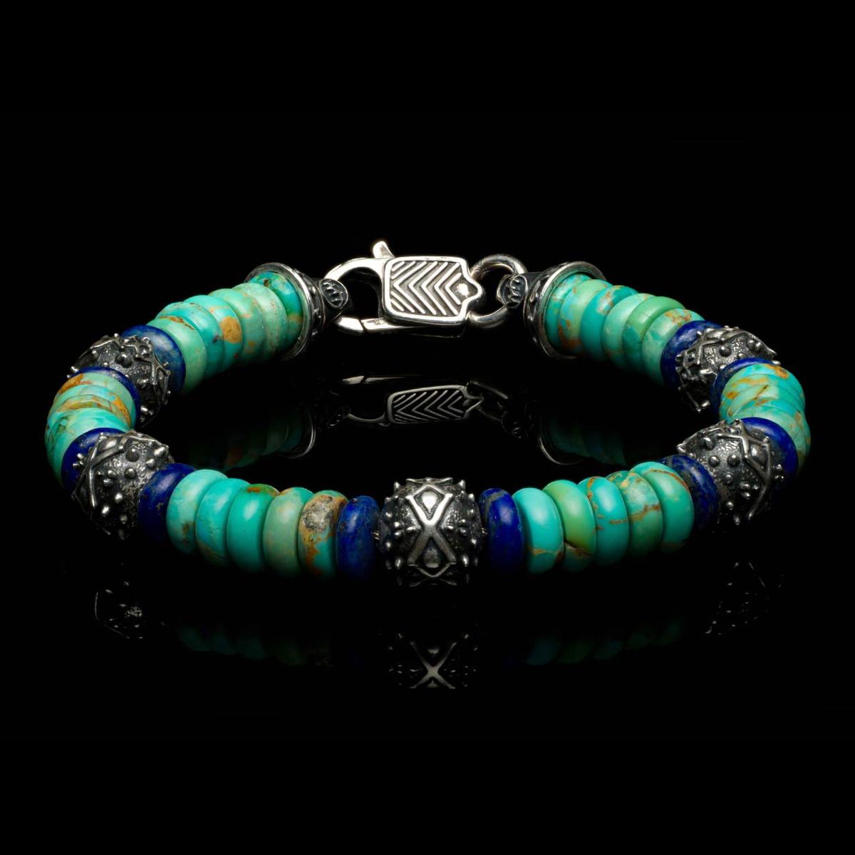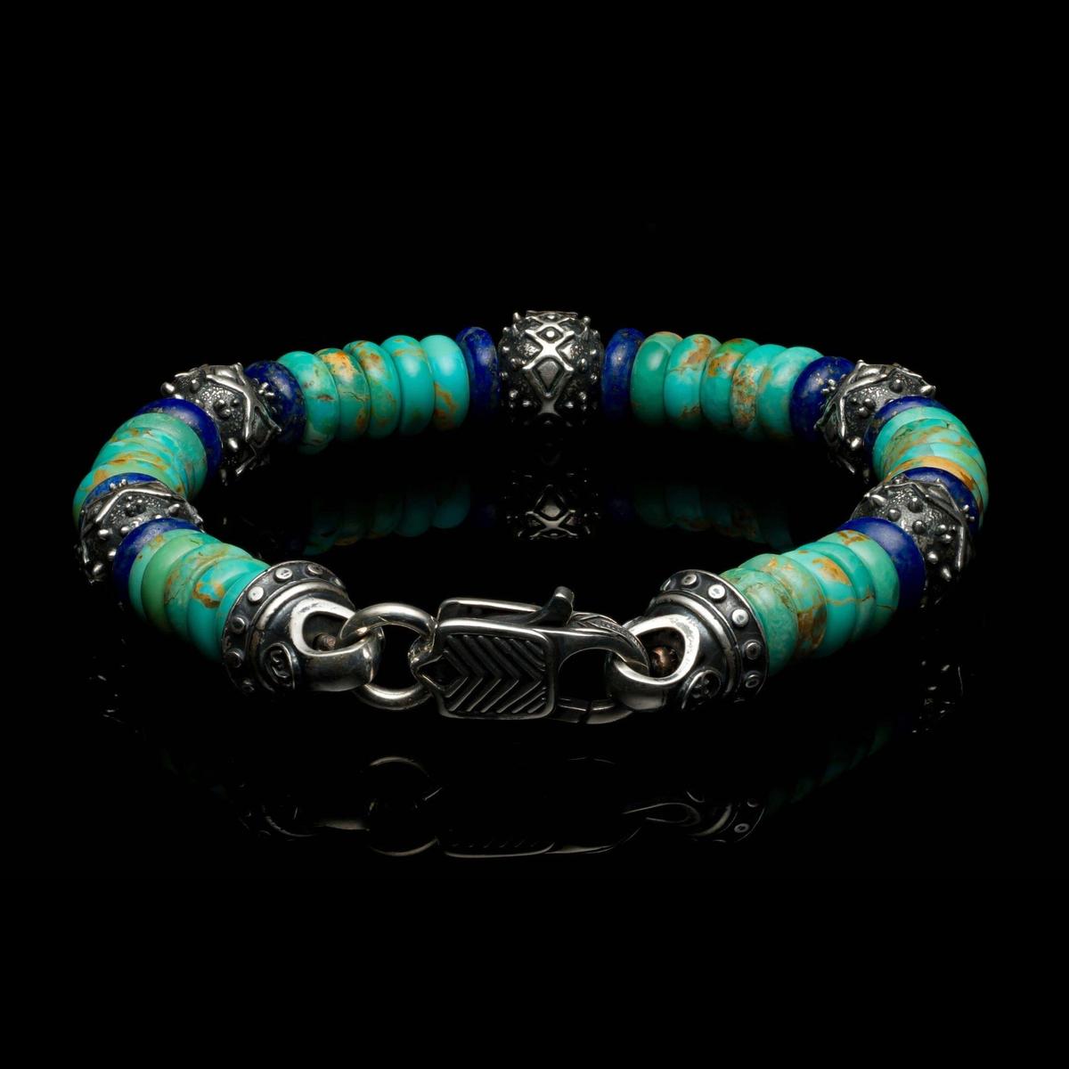 Beaded bracelet with Kingman turquoise, lapis lazuli and sterling silver beads
