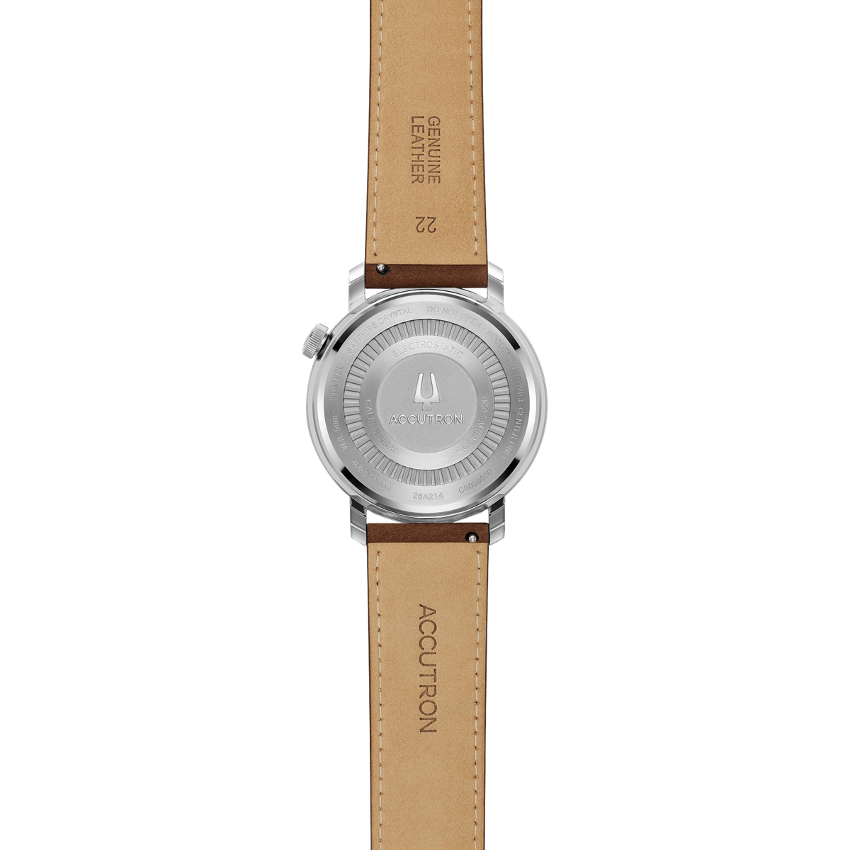 Accutron's Proprietary Electrostatic Movement. The electrostatic energy is created by twin turbines that rotate as a result of human motion at incredible speeds between two electrodes affixed to the movement. The energy, stored in an accumulator, powers two motors; a world’s first electrostatic motor fueling the fluid second hand and a step motor powering the hour and minute hands.