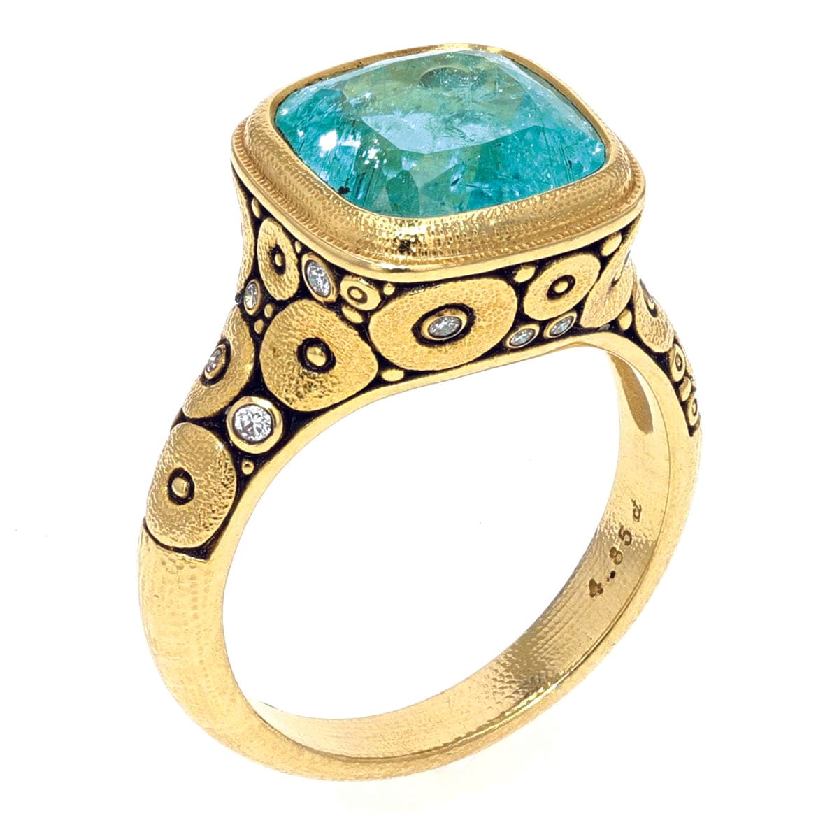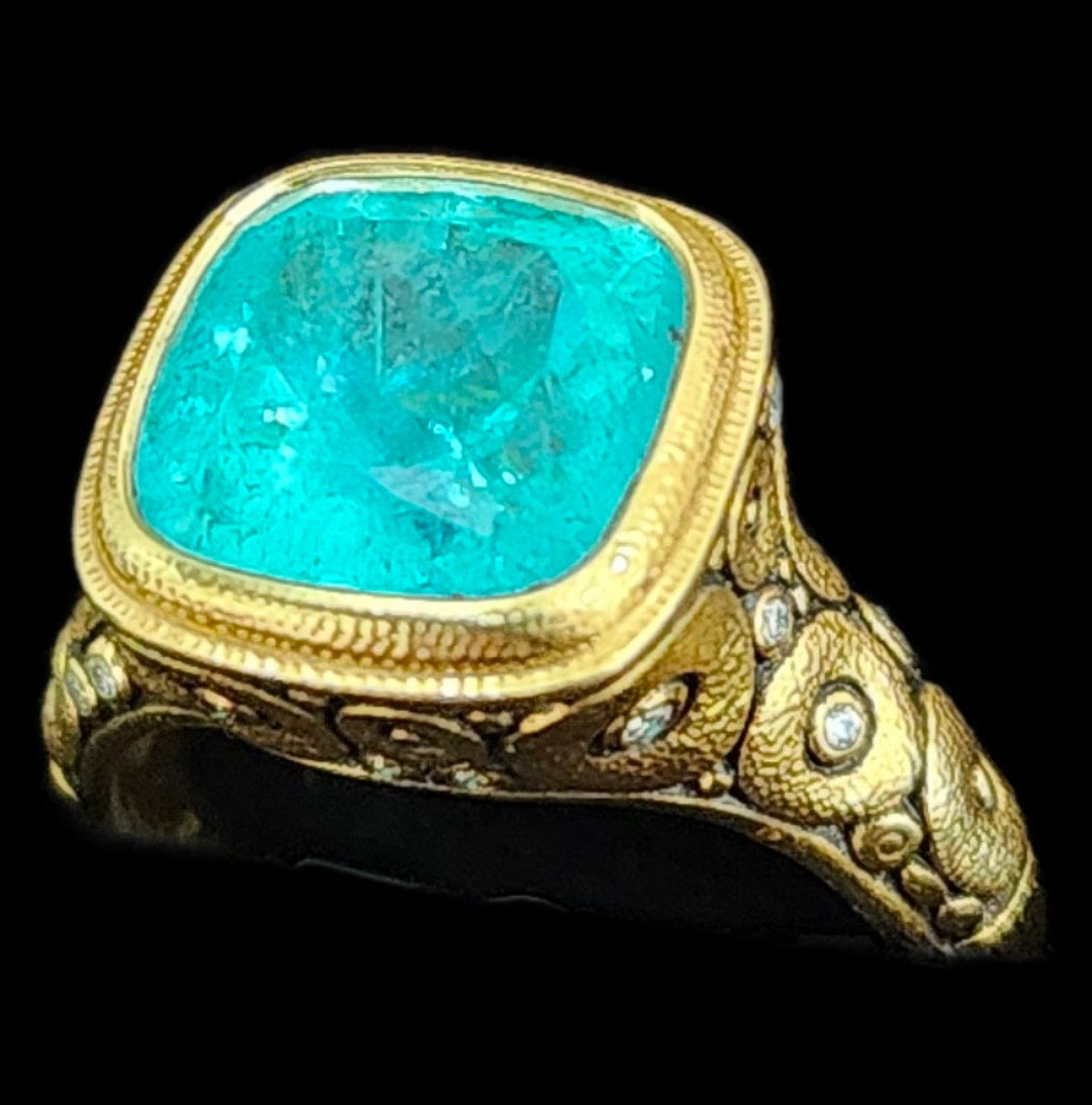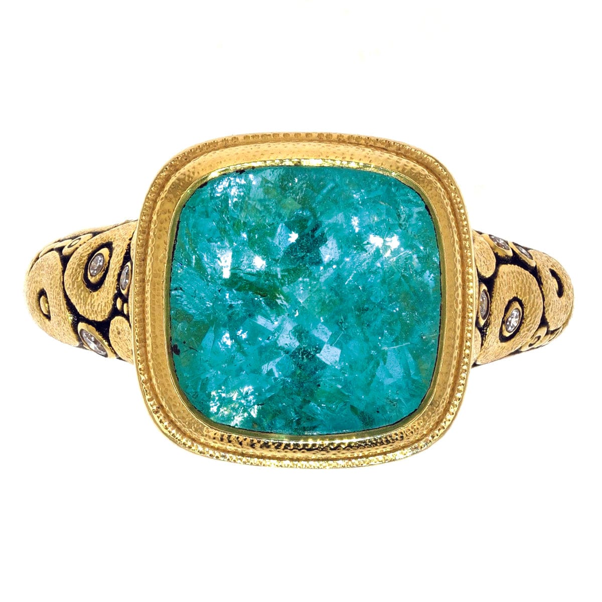 18K and Diamond "Orchard" Ring with African Paraiba Tourmaline - R-137