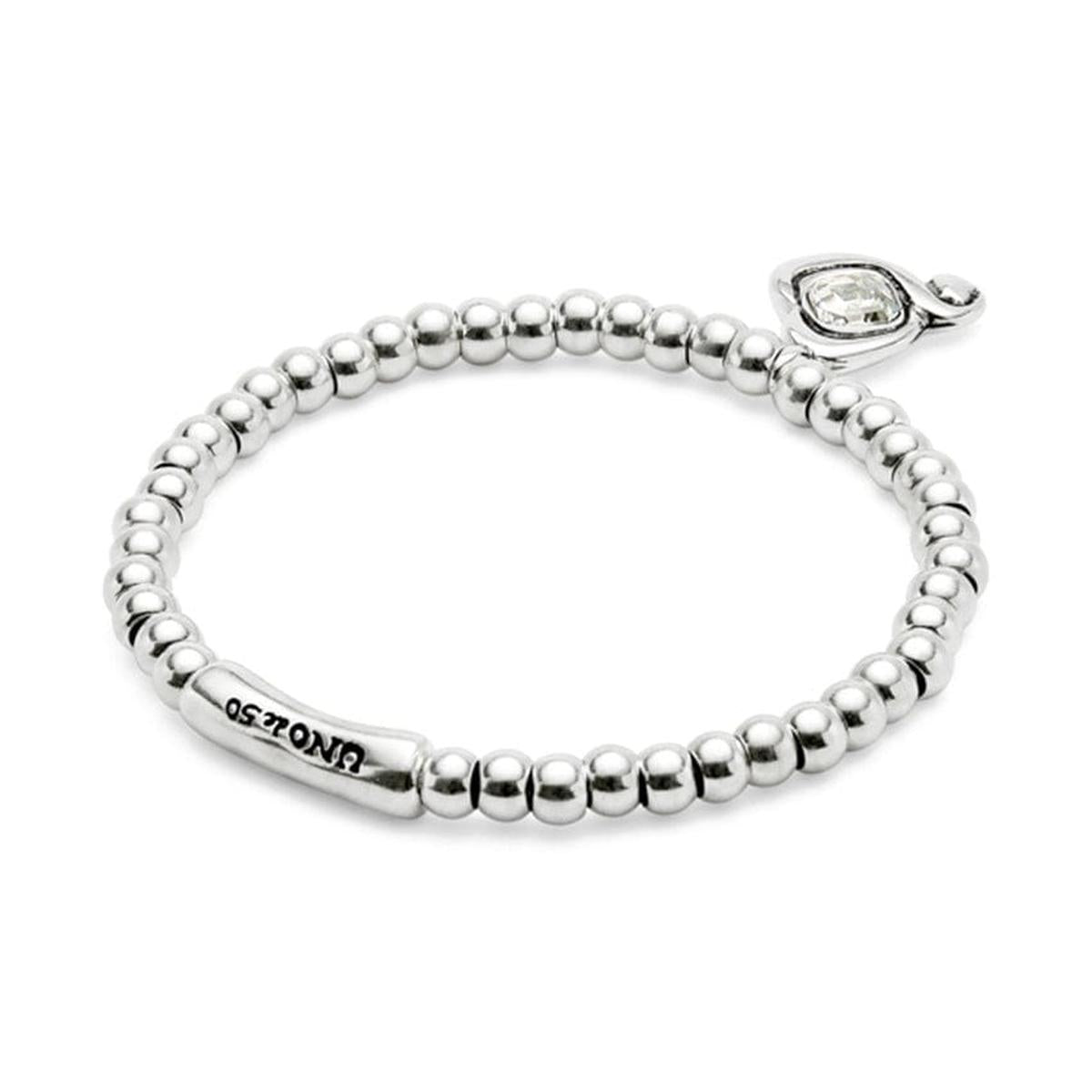Sterling Silver-plated Beaded Bracelet with Heart and Clear Crystal - PUL2514CRSMTL