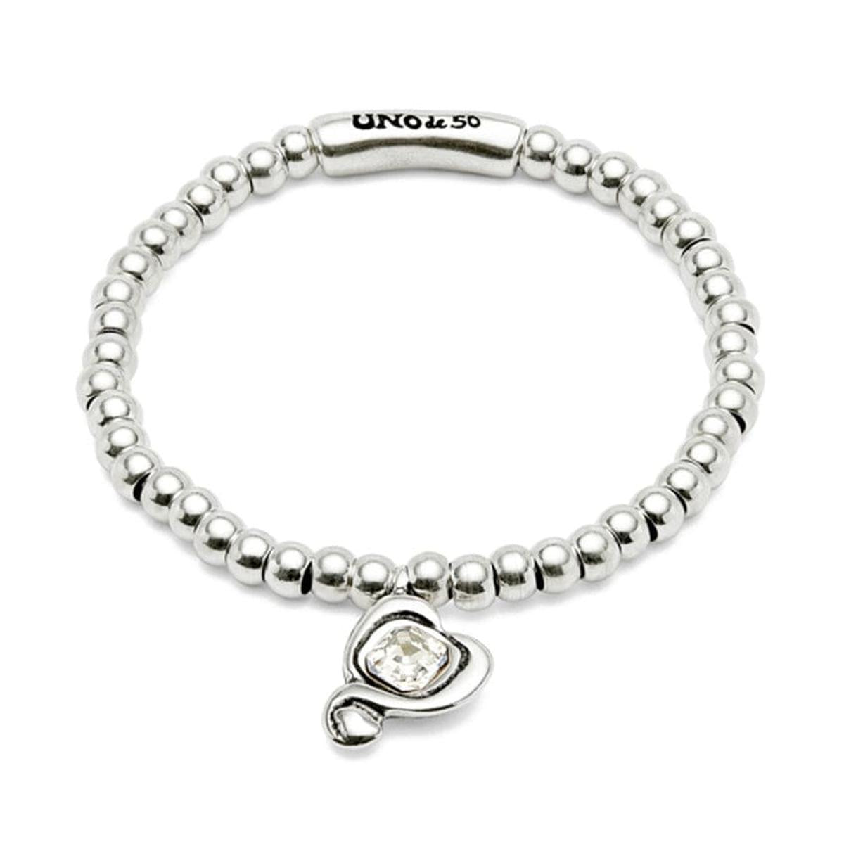 Sterling Silver Plated Beaded Bracelet with Heart and Clear Crystal - PUL2514CRSMTL