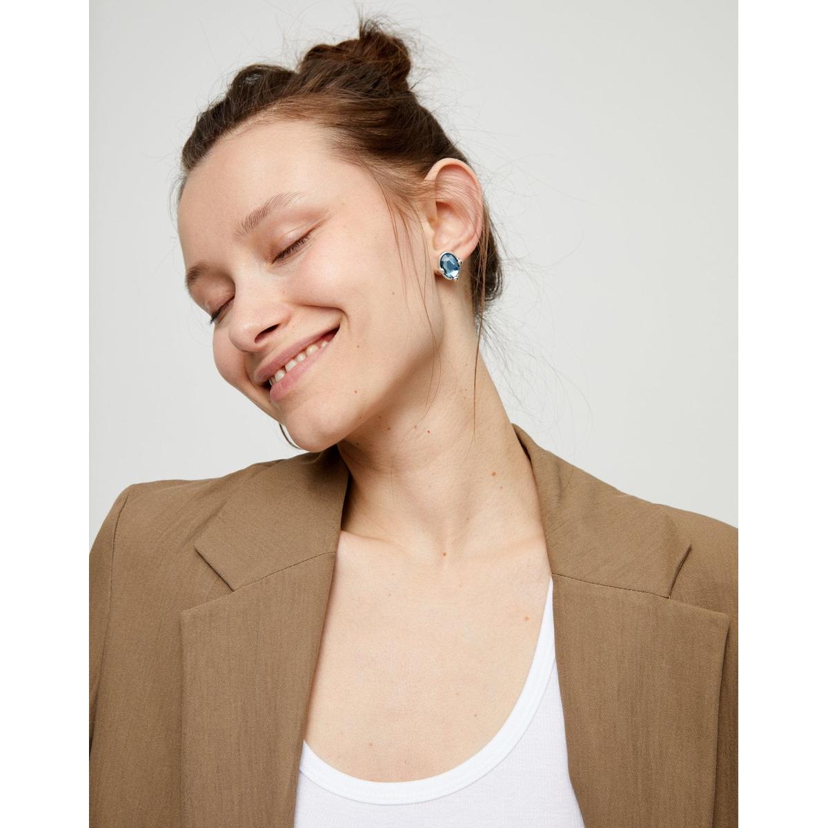 Ser Deslumbrante Blue Oval Faceted Crystal Silver Plated Earring - PEN1002AZUMTL0U