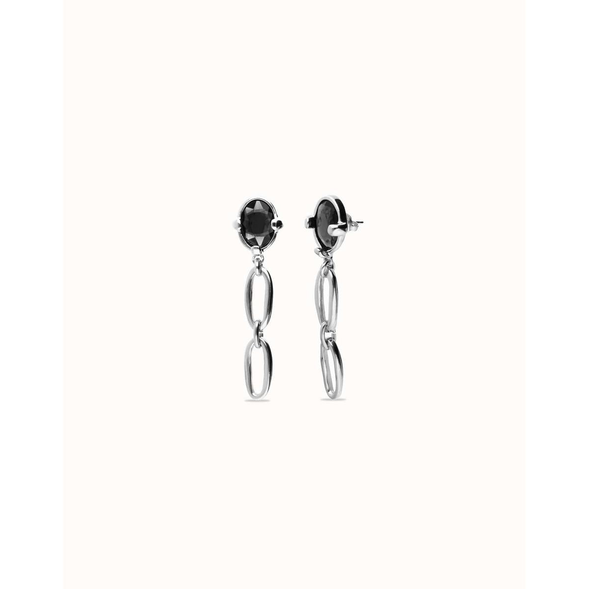 Drop earrings with faceted black crystal and links