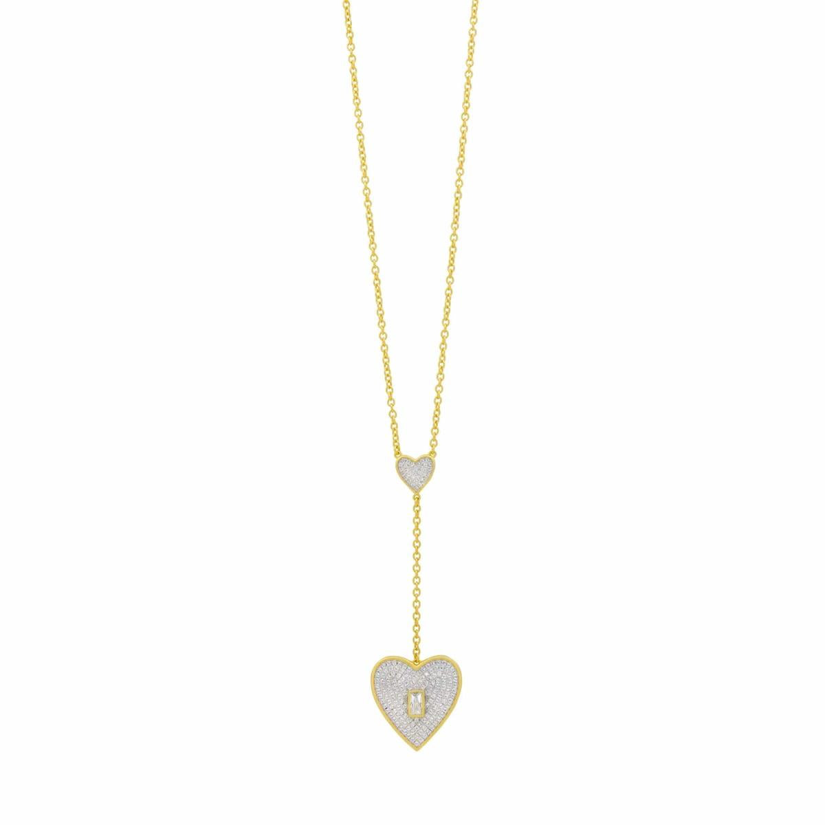 Understated, timeless, and heartfelt - this lariat necklace takes center stage. Signature matte gold and handset pavé stones shimmer from two hearts for double the shine, extended on a delicate drop chain for elegance. Dress yourself in love and let the light in.