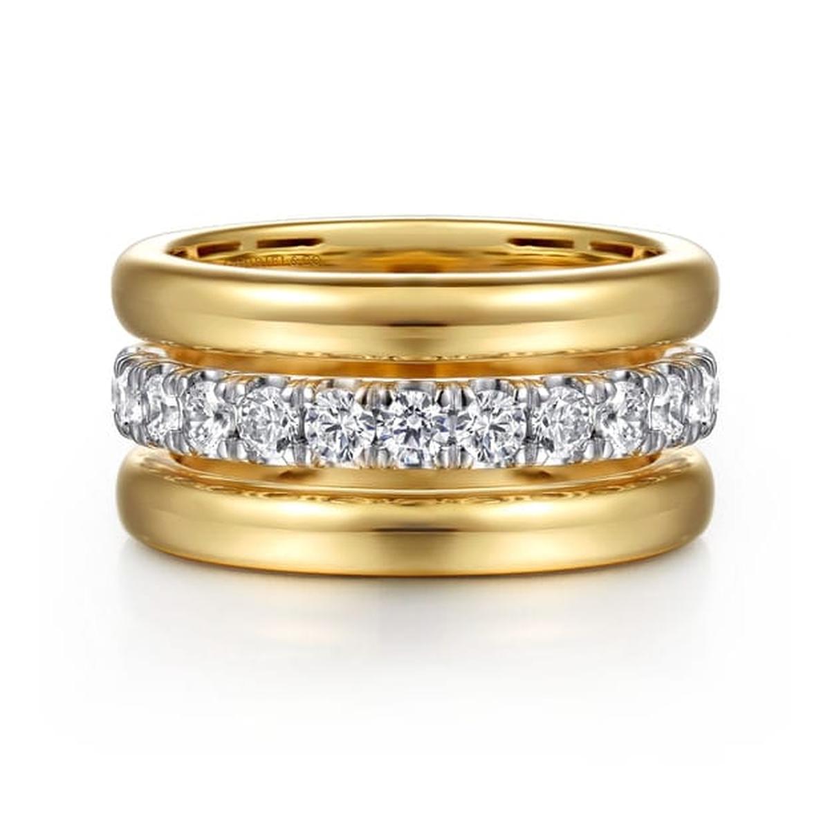14K White & Yellow Gold Bujukan and Diamond Easy Stackable Ring Bujukan Collection