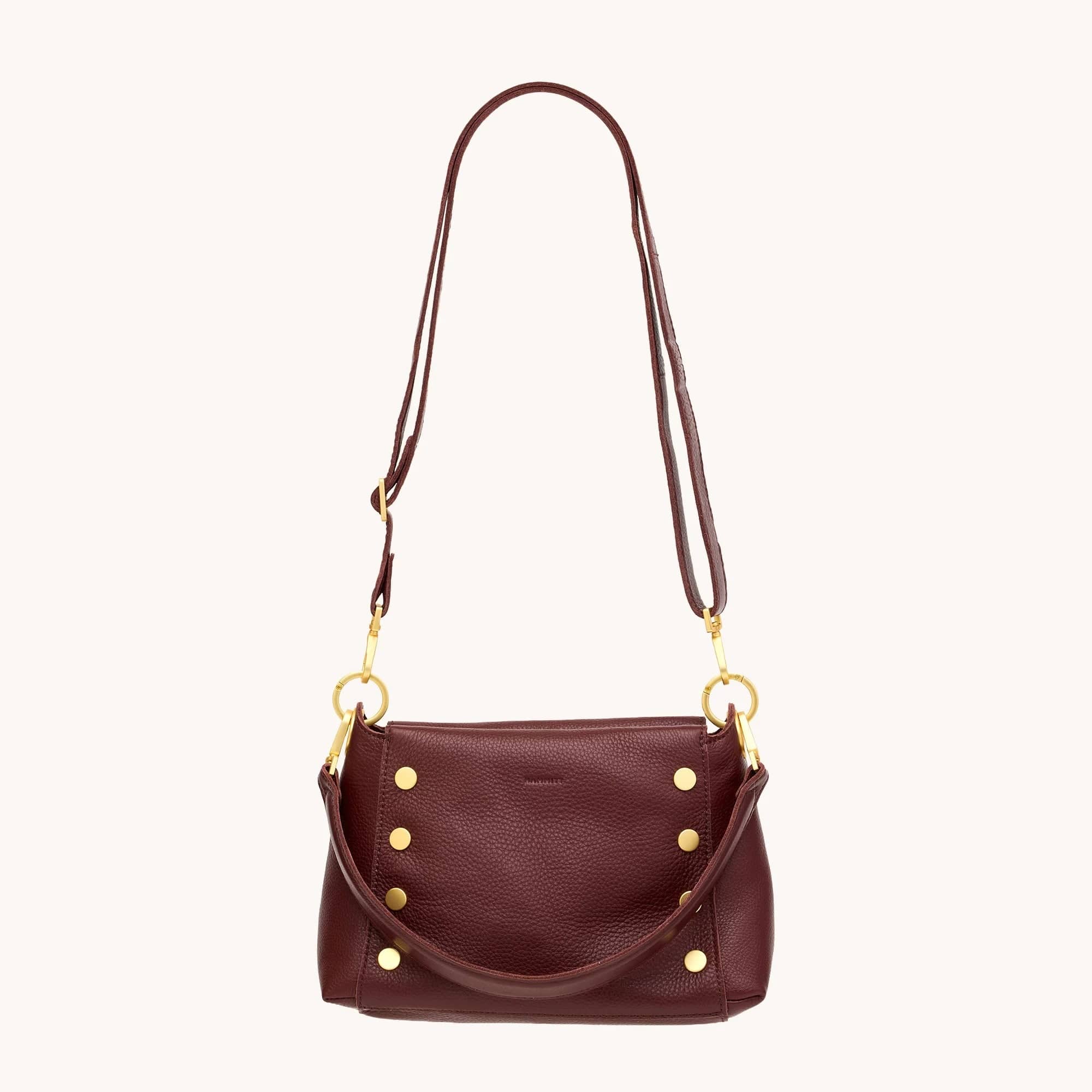 - Crafted with a deep oxblood red pebble leather with brown and red undertones