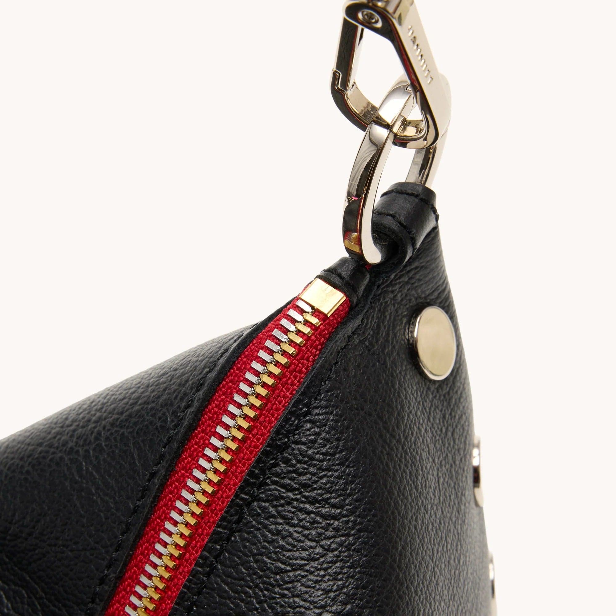 - Exterior: tassel zipper pull, o-rings for strap attachments, back zip cell pocket - vertical opening, zippered main compartment, diagonal seams