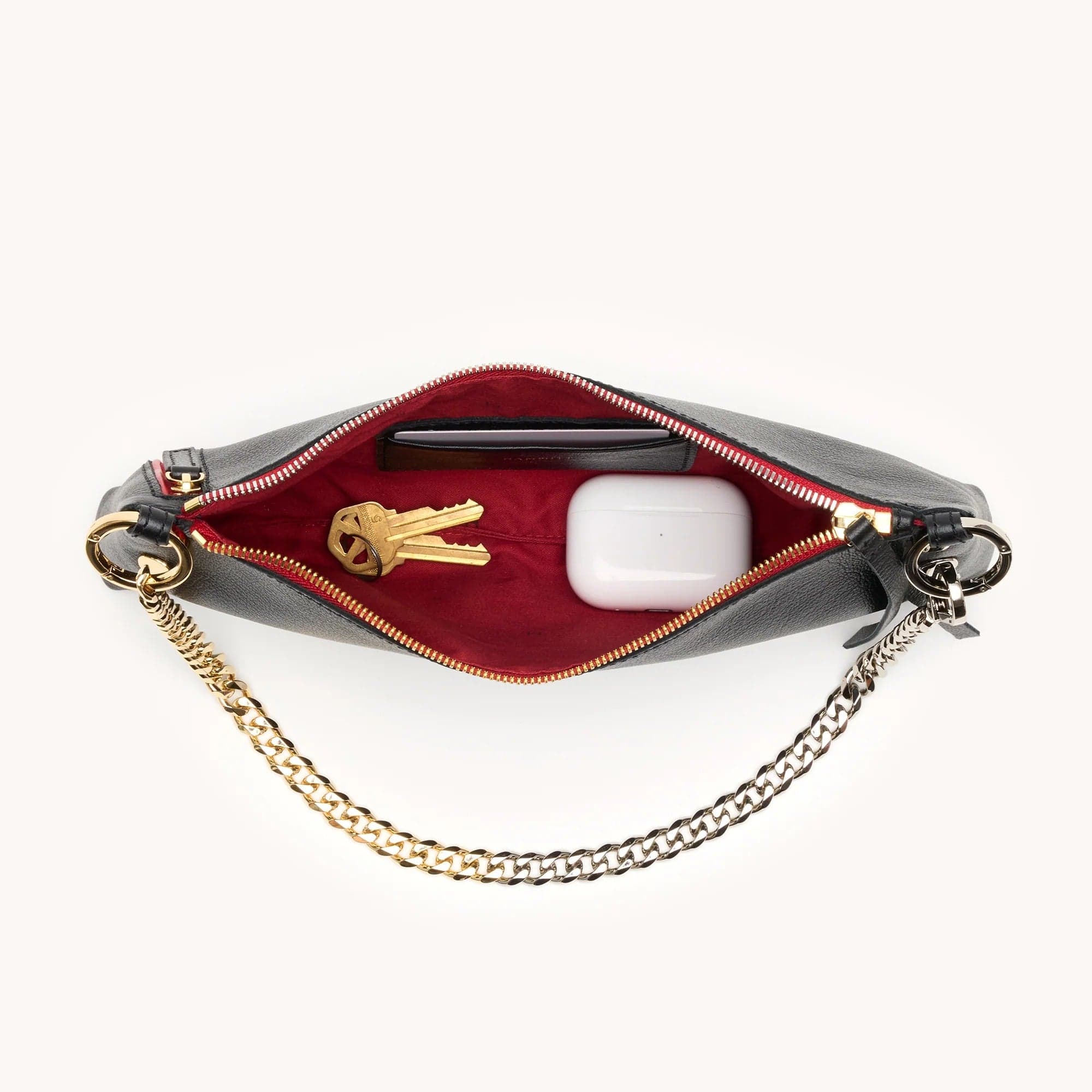 - Crafted with a deep oxblood red pebble leather with brown and red undertones