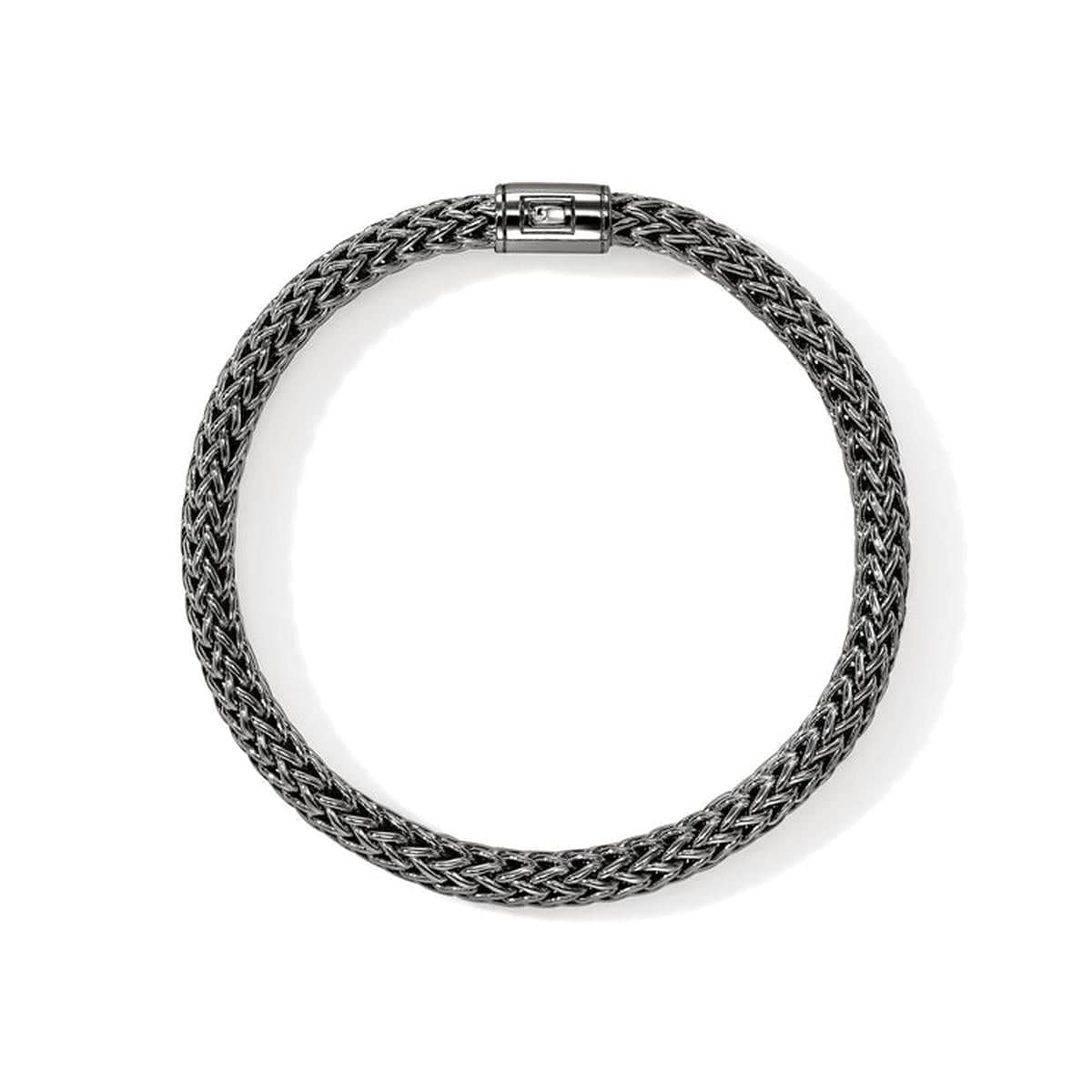 A foundational expression of our craft, this Icon Chain bracelet is woven by hand in reclaimed dark sterling silver.