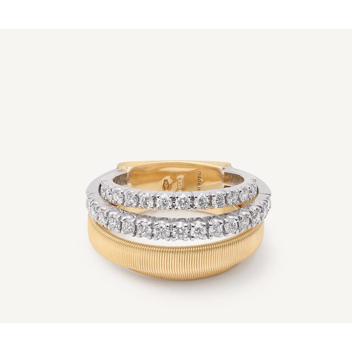 18K Yellow Gold 4-Strand Coil Ring with 2 Diamond Pavé Bands - AG363 B1 YW M5