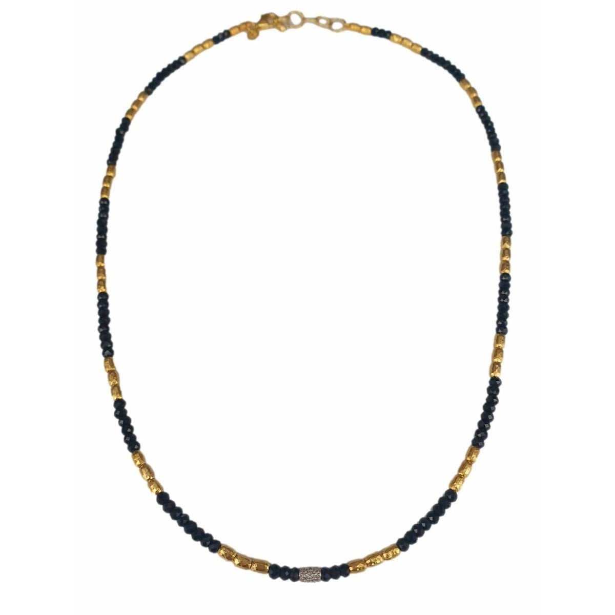 14K Gold, Black Tourmaline & Diamond Necklace - M9216