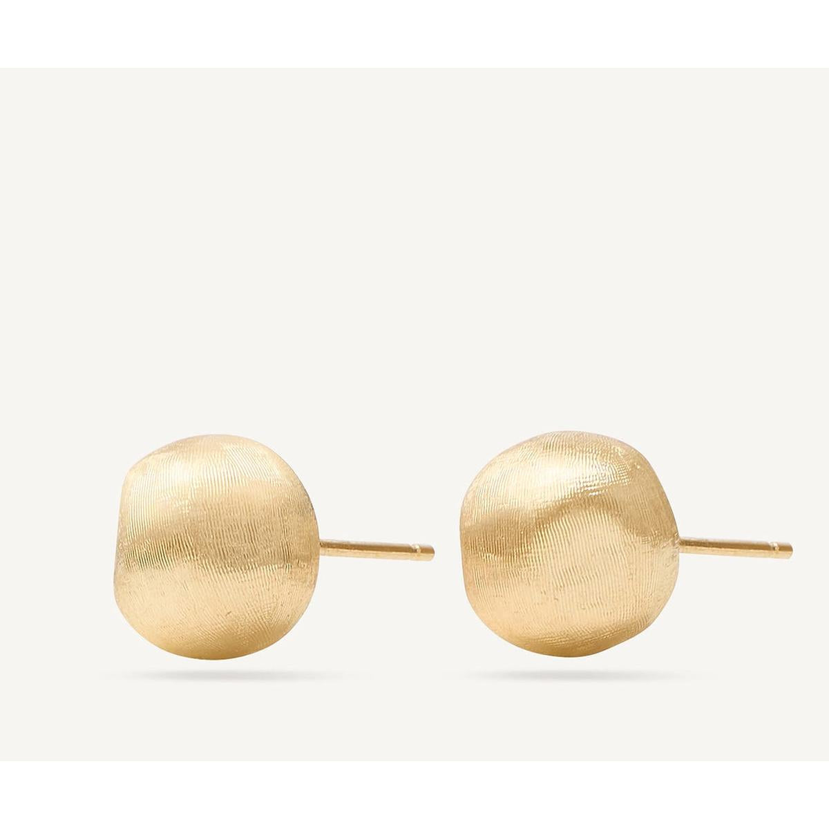 18K yellow gold stud earrings. Inspired by tribal jewelry and the soft dunes of the Sahara, these Africa Gold Earrings are hand engraved by Italian artisans.