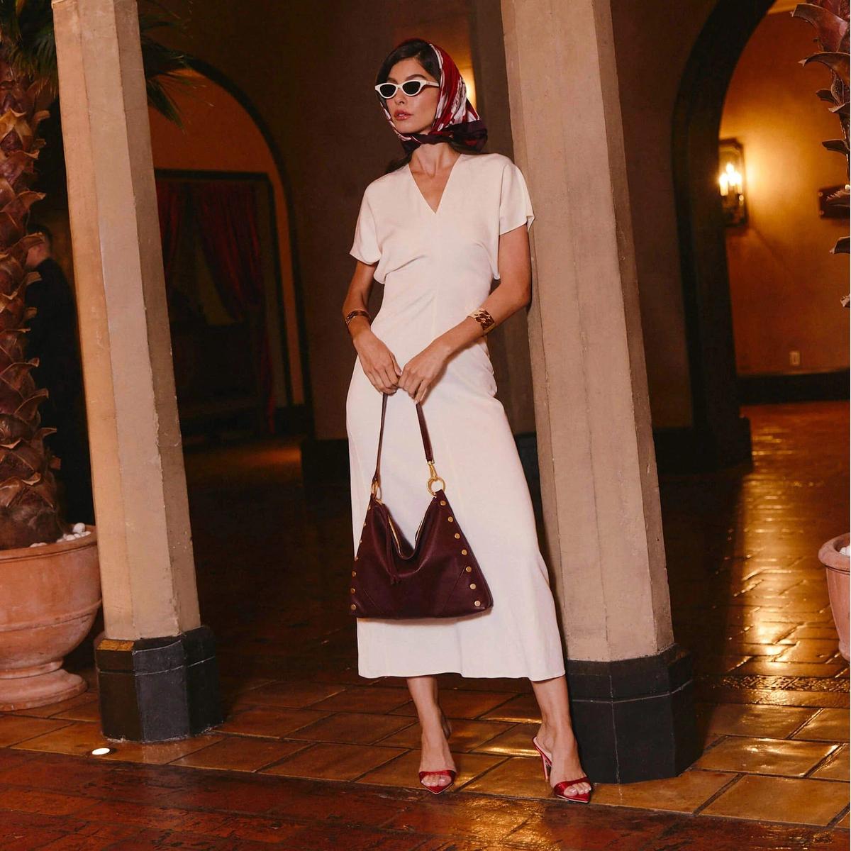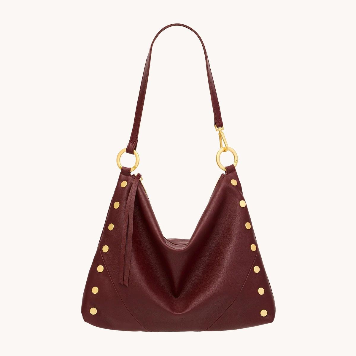 - Crafted with a deep oxblood red pebble leather with brown and red undertones