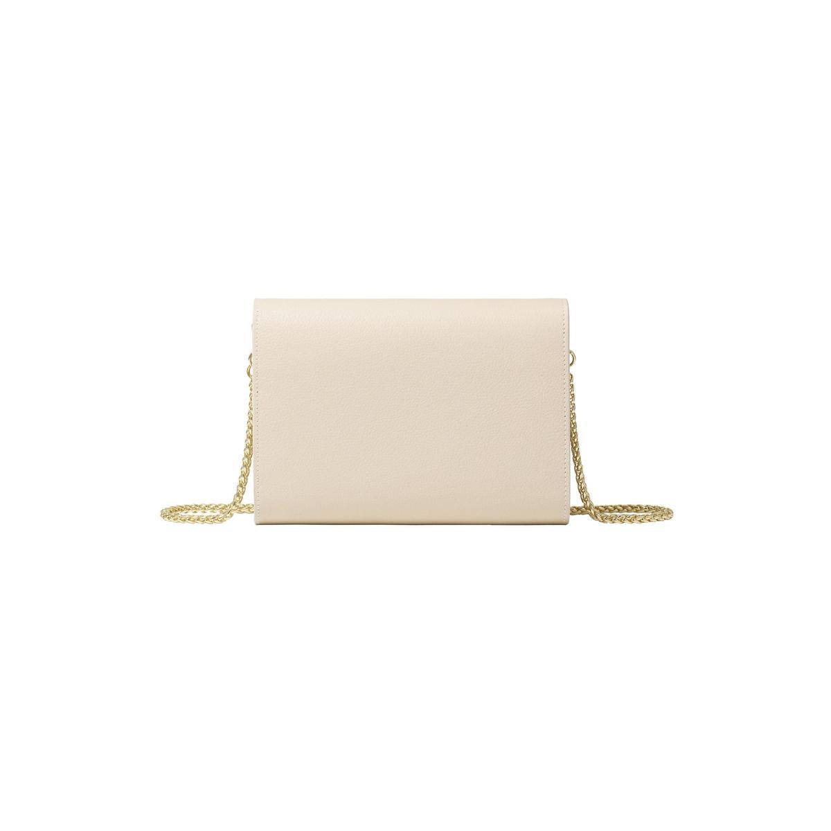 A sophisticated but eccentric clutch, the golden chain shoulder strap and the central metal accessory make it a jewel you can't be without, which is ideal for any occasion. The internal compartment structure and contrasting lining emphasize the fashion vibe.