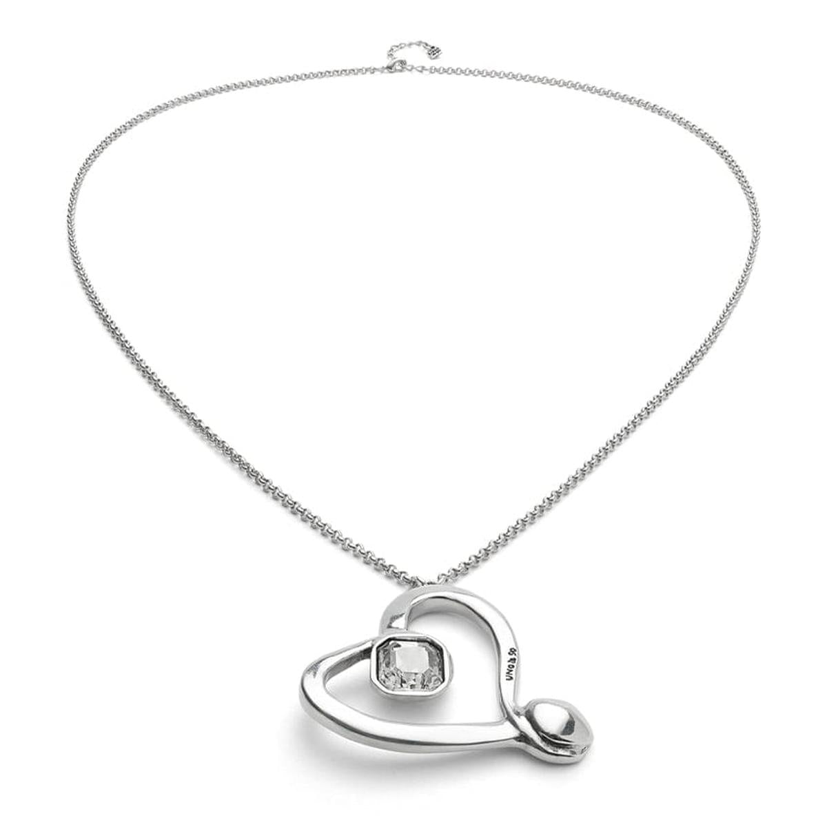 Long Sterling Silver Plated Pendant and Large Heart with Clear Faceted Crystal - COL1990CRSMTL0U
