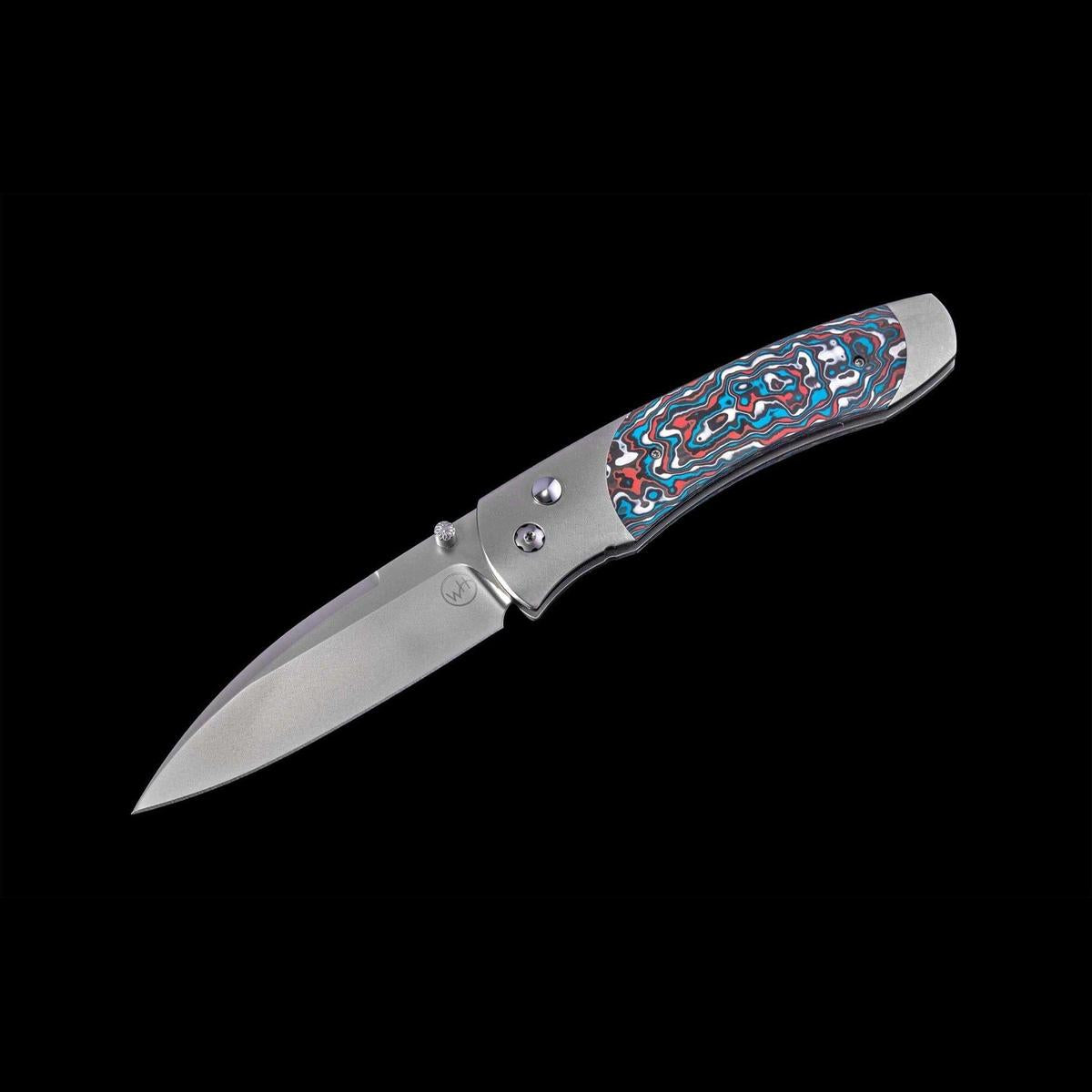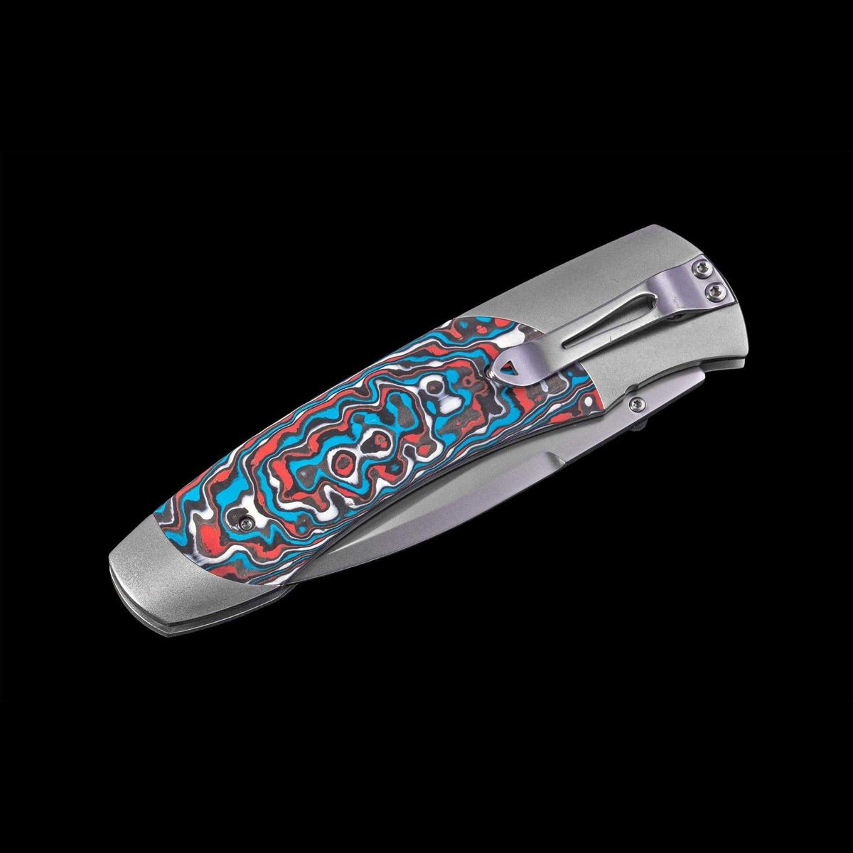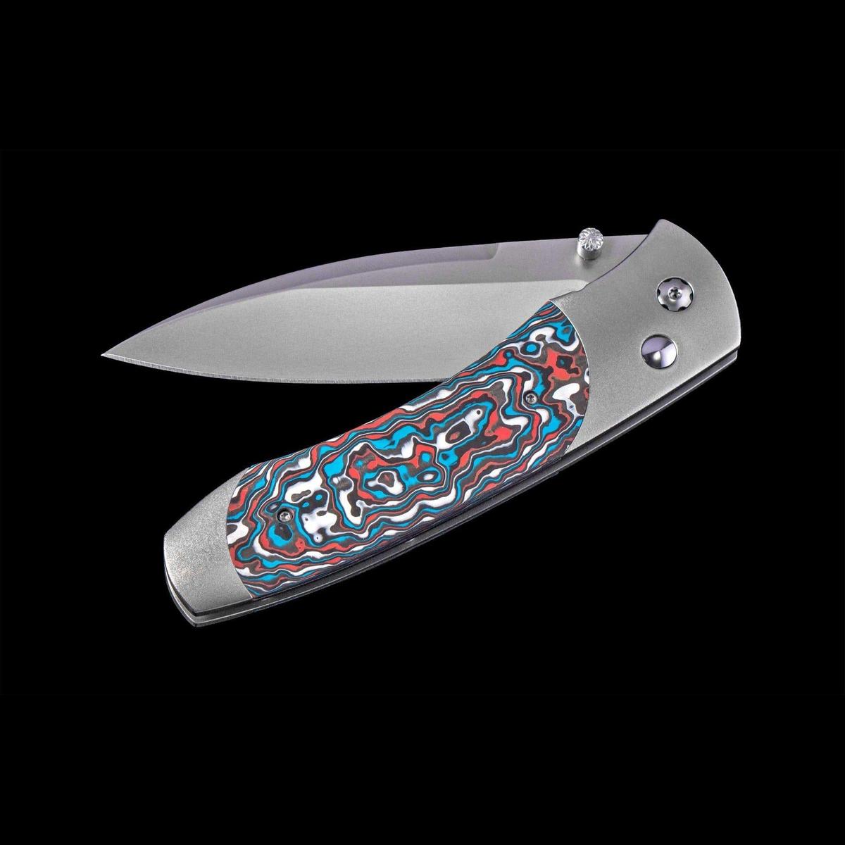 Titanium pocketknife with stainless blade and colored carbon fiber