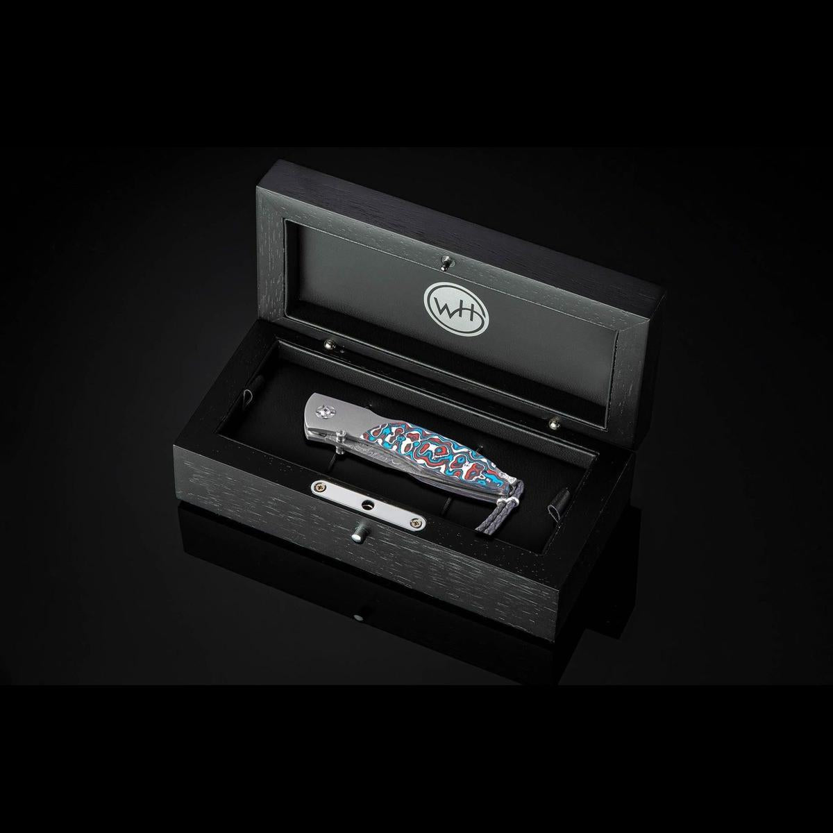 This design features a secure mid-lock system utilizing a William Henry patented hidden spring to maximize blade to handle ratio and the thumb stud provides easy one hand opening.