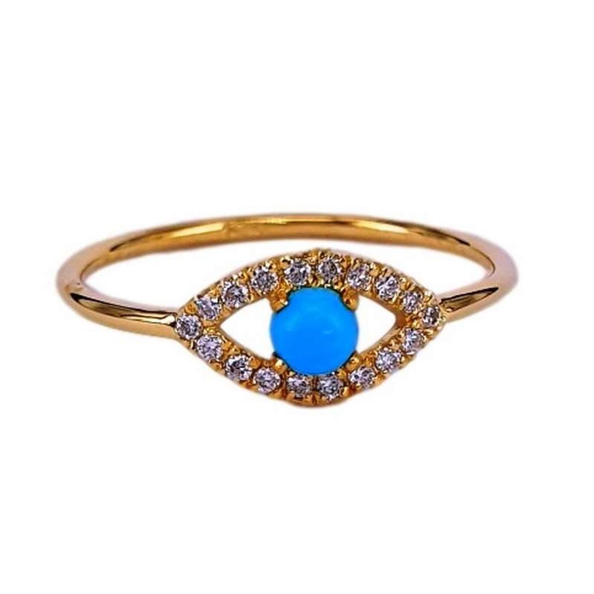 14K Gold and Diamond Turquoise Evil Eye Ring - M8267