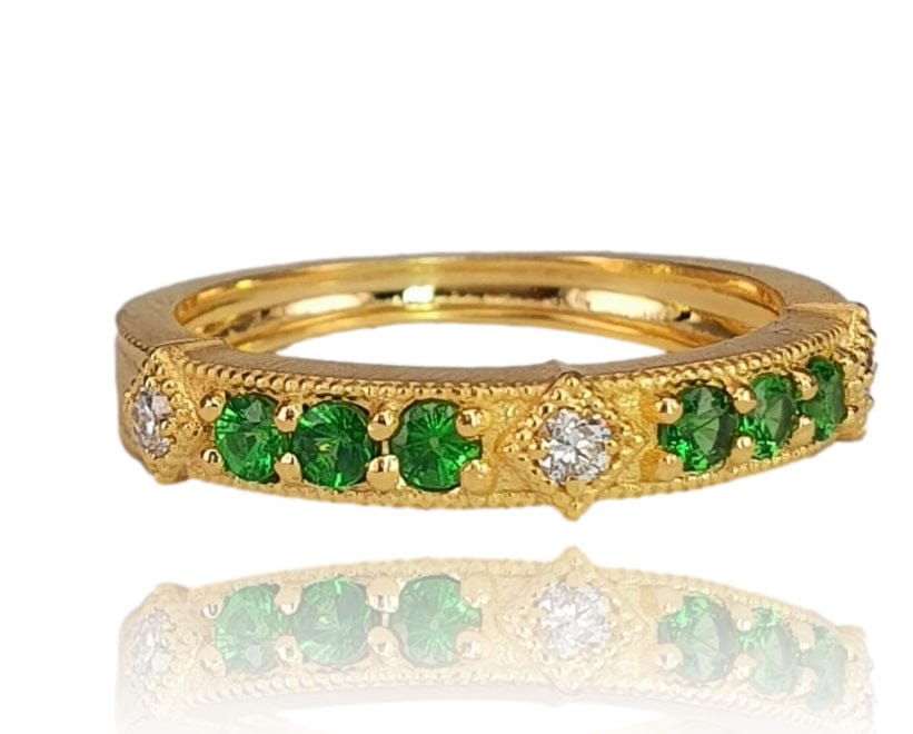 14K Gold Tsavorite Band Ring with Diamond Accents – M10042