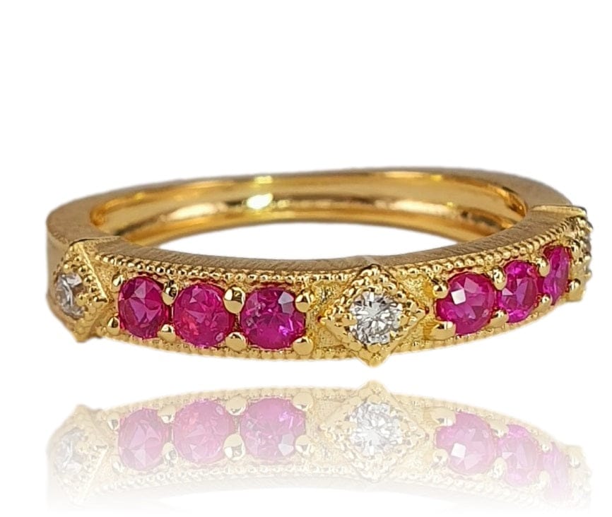 14K Gold Pink Sapphire and Diamond Stackable Band – M10043