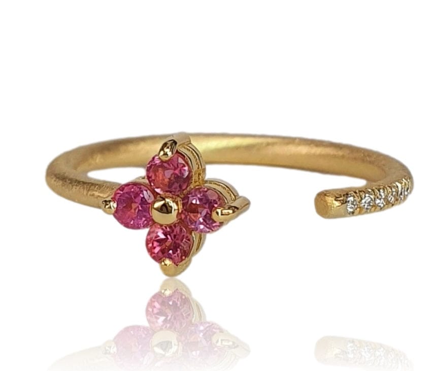 This 14K yellow gold ring combines timeless sophistication with refined craftsmanship. Featuring 0.03 carats of diamonds and a striking 0.30-carat pink sapphire, the design balances sparkle with color for distinctive appeal. Weighing approximately 1.8 grams, the piece delivers substantial presence without excess weight, making it equally suited to daily elegance or special occasions. An expertly proportioned selection for the discerning collector.