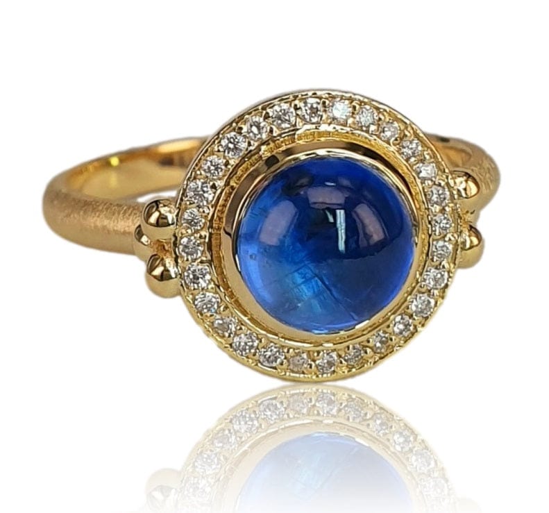 14K Gold Round Kyanite Ring with Pavé Diamond Halo – M10064
