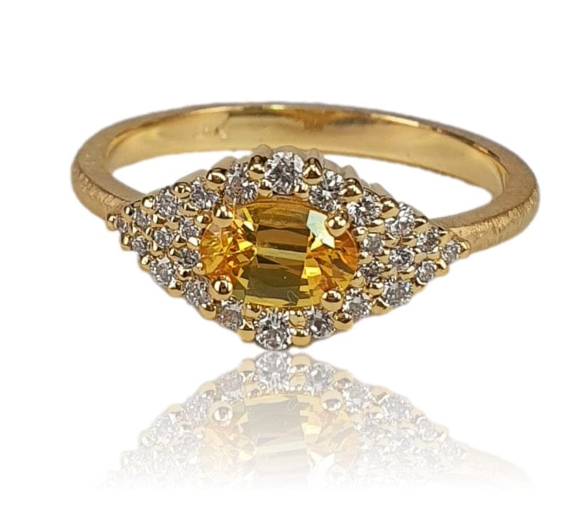 14K Gold Oval Yellow Sapphire Ring with Pavé Halo – M10224