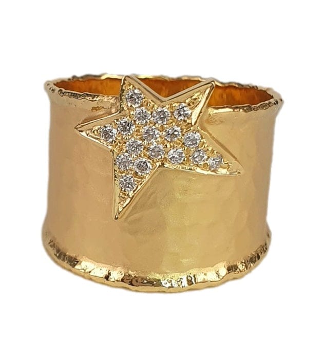14K Gold Wide Band Ring with Pavé Star – M9522