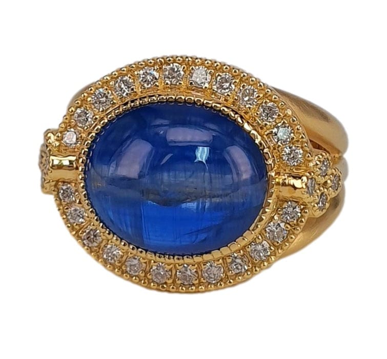 14K Gold Oval Kyanite Ring with Diamond Halo – M9895