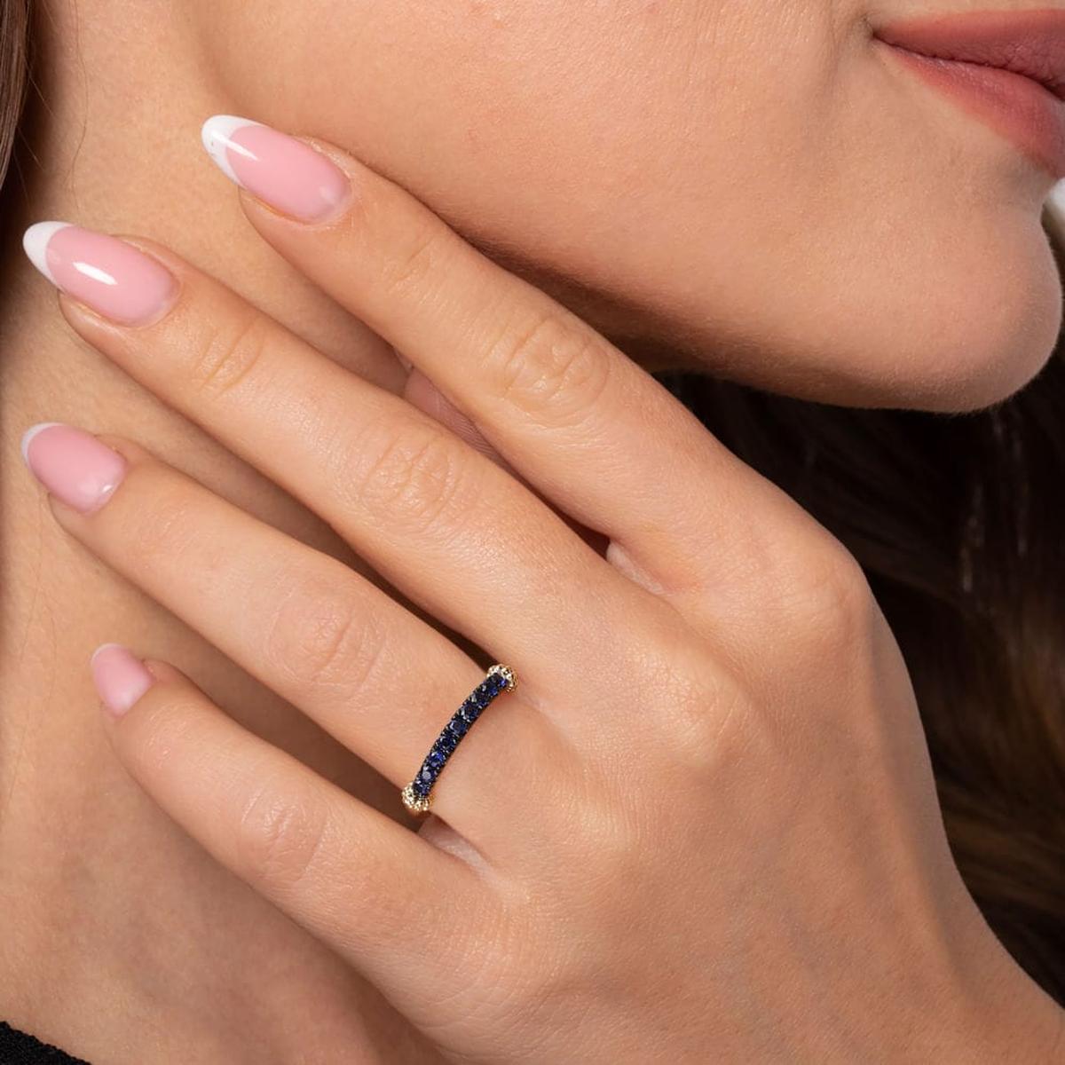 14K Yellow Gold Bujukan and Blue Sapphire Stackable Ring