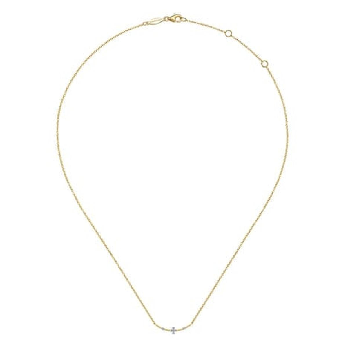 14K Yellow Gold Curved Bar Necklace with Diamond Stations - NK6111Y45JJ