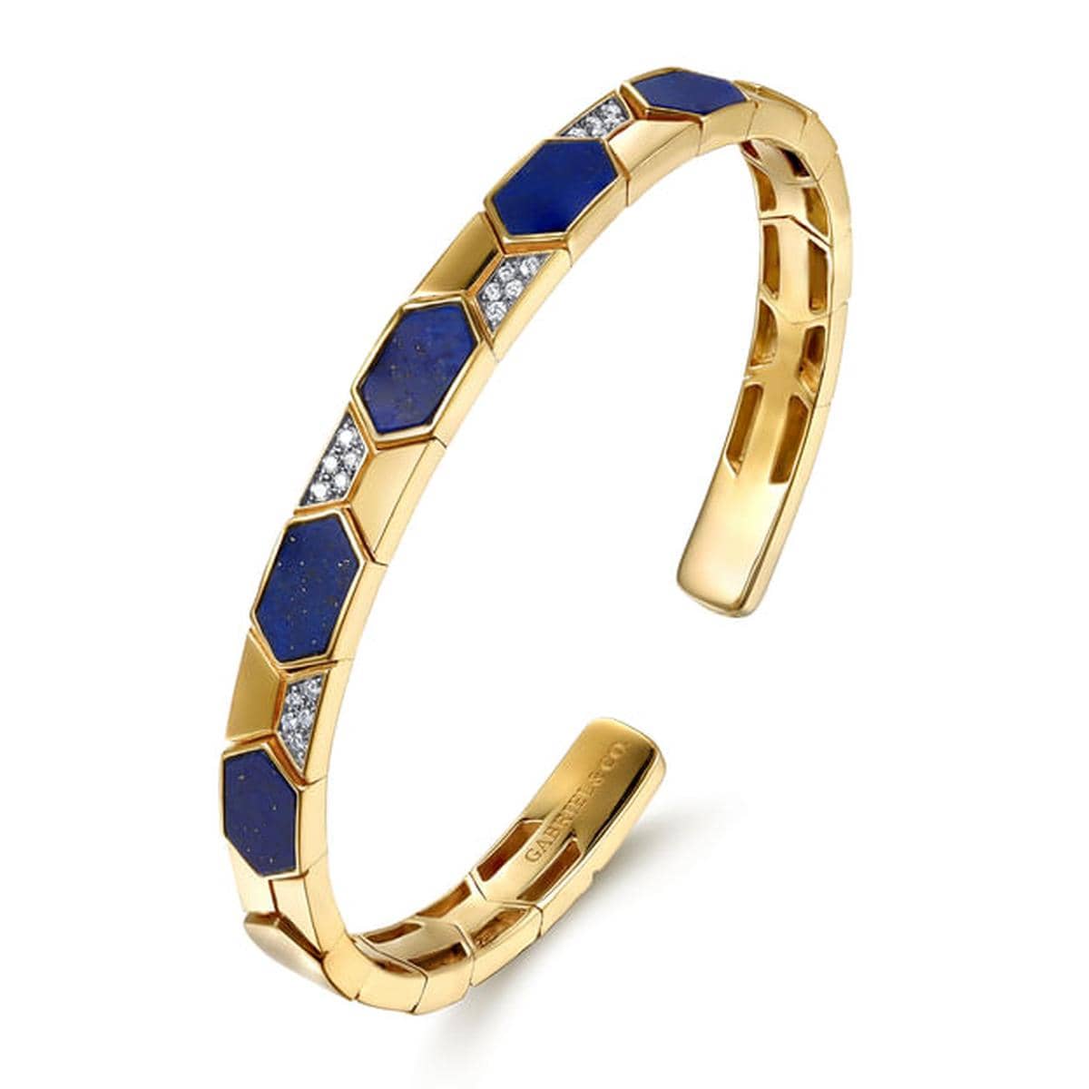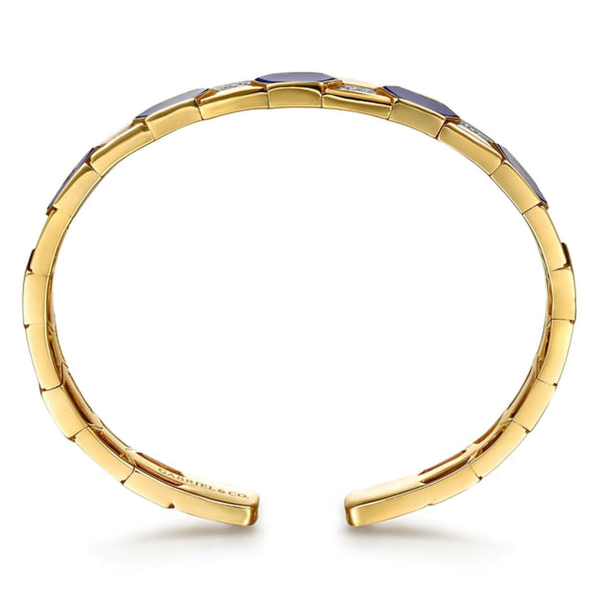 14K Yellow Gold Diamond and Lapis Bangle Bracelet Contemporary Collection