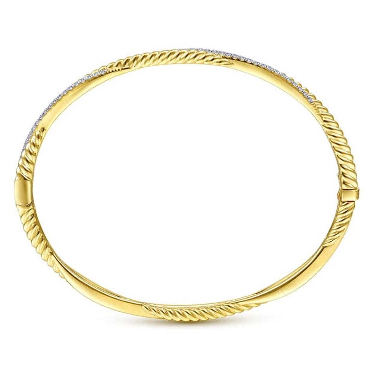 14K Yellow Gold Twisted Rope and Diamond Bangle – BG4275-65Y45JJ