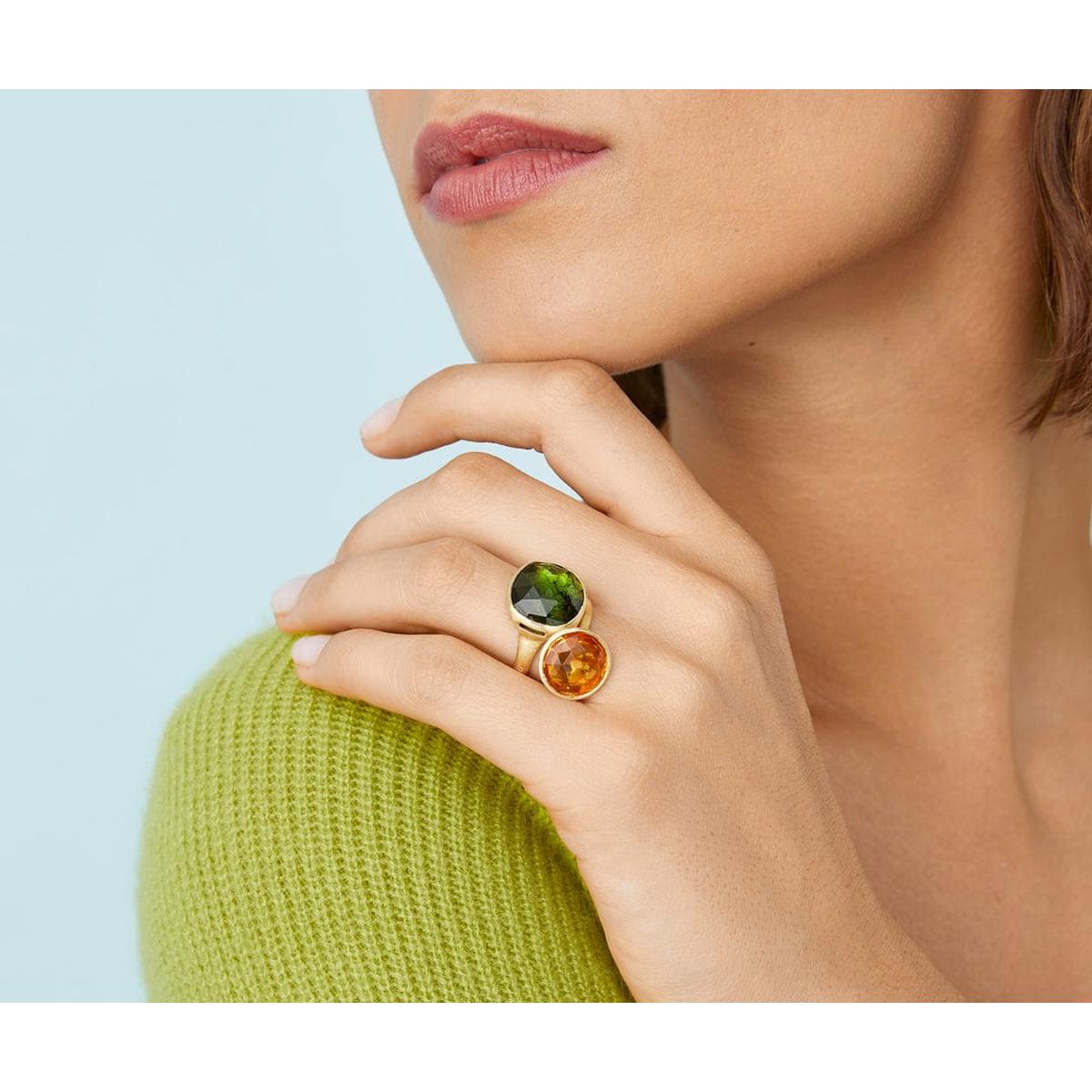 Boasting bright colors and clean lines, this ring is embellished by a carefully selected semi-precious gemstone, encircled in an 18K yellow gold bezel setting, hand-engraved using an ancient Florentine technique. It is perfect on its own or matched with the other colors in the collection.