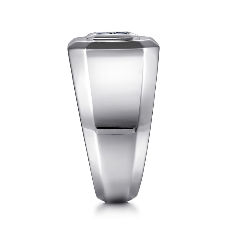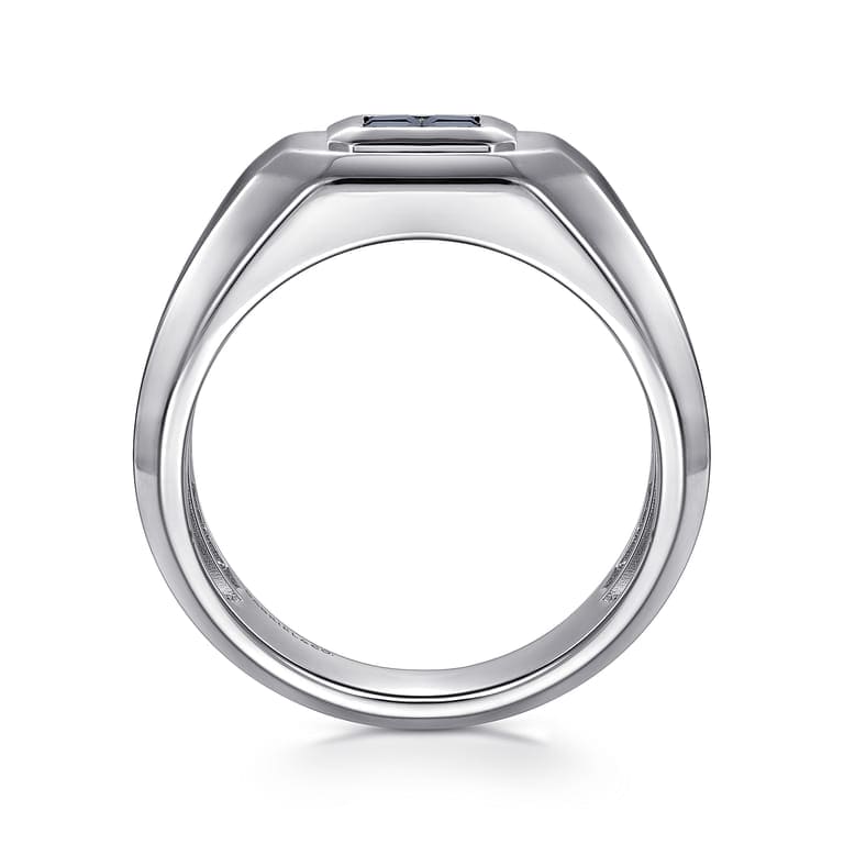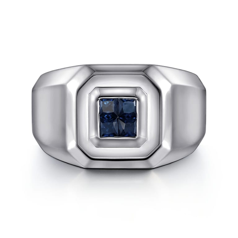 925 Sterling Silver Signet Ring with Princess Cut Sapphire - Facets Collection (Gabriel Men Silver)