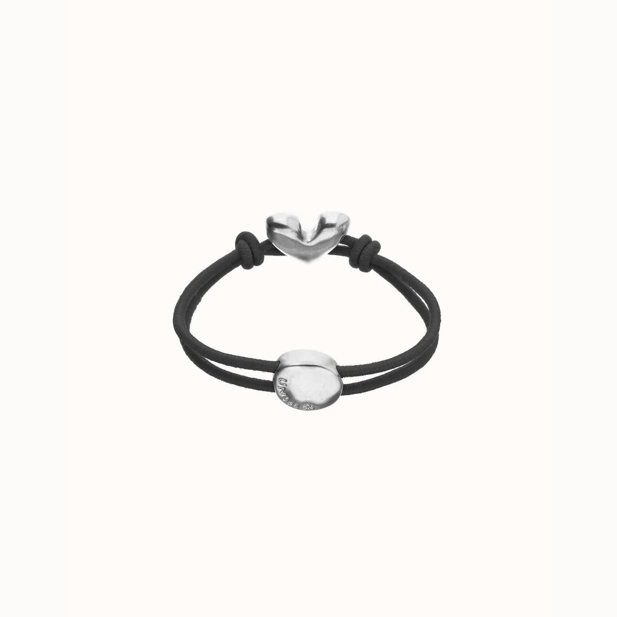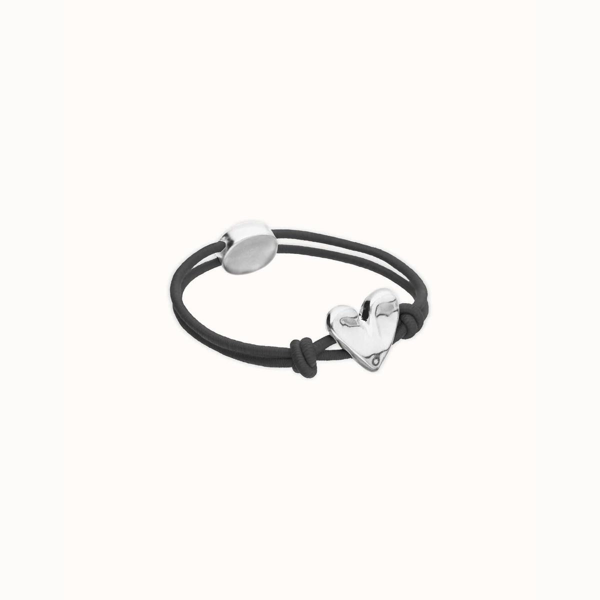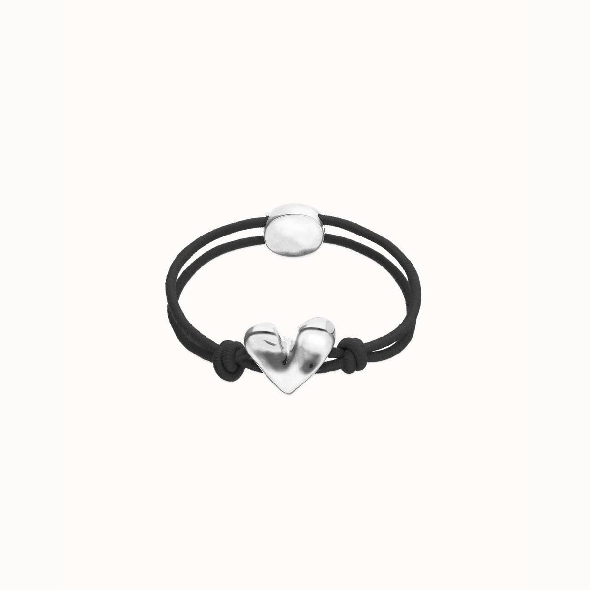 Black elastic thread bracelet with heart. When something inside you beats strongly, there is only one way to listen to it: let go. The Beat Collection is a celebration of letting go of the reins and letting your heart lead the way. A handmade heart, imperfect, but real. Because the result of living this way is a heart sculpted with your own hands.