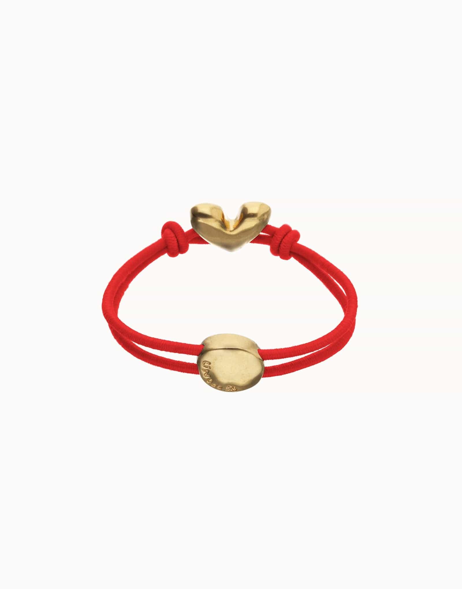 Red elastic thread bracelet with heart. When something inside you beats strongly, there is only one way to listen to it: let go. The Beat Collection is a celebration of letting go of the reins and letting your heart lead the way. A handmade heart, imperfect, but real. Because the result of living this way is a heart sculpted with your own hands.
