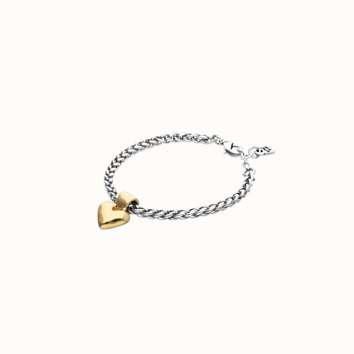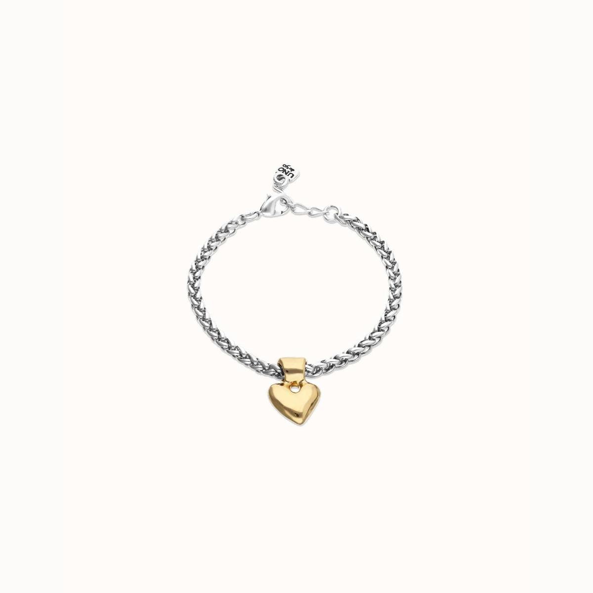Silver Chain Bracelet with Small Golden Heart Detail - PUL2642OROMTL