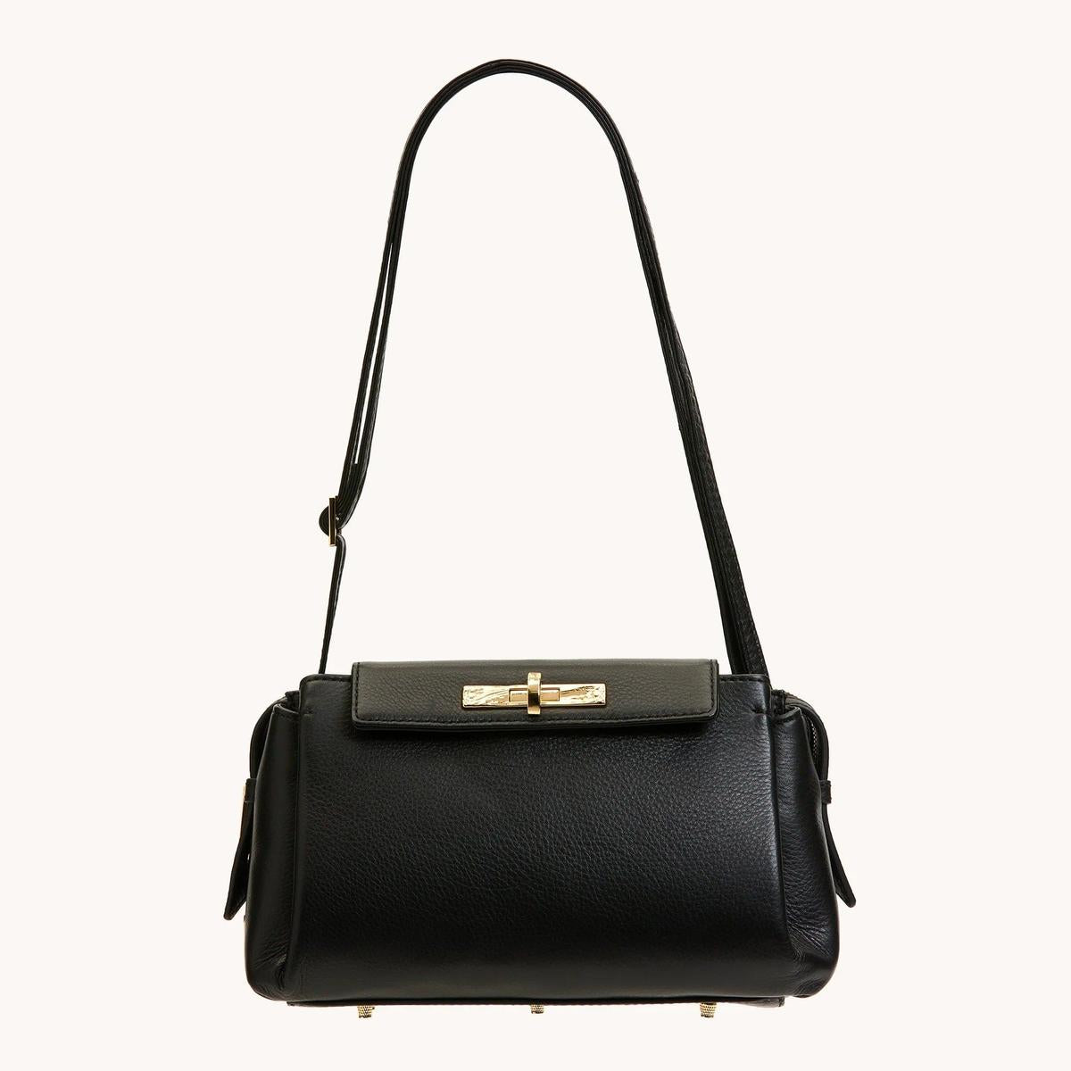 The Charlotte Med is an elevated new silhouette, with a beautiful long drop shoulder strap, and a crossbody strap option, featuring a beautiful water-inspired lock on the front pocket. This bag has a large capacity with two main compartments, both with large magnetic gussets that open wide easily for easy access.