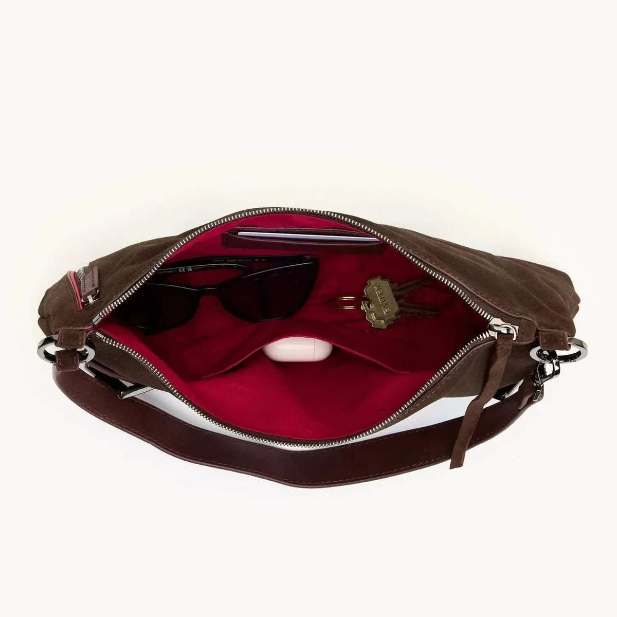 The suede is deliciously soft - and we're here to help you keep it that way! We handpick suede that is generally water resistant. We do recommend keeping this bag away from dirt and oils - storing in its dust bag is a must! Take special caution after applying lotion, sunscreen or other skincare. We recommend washing your hands before carrying your bag!