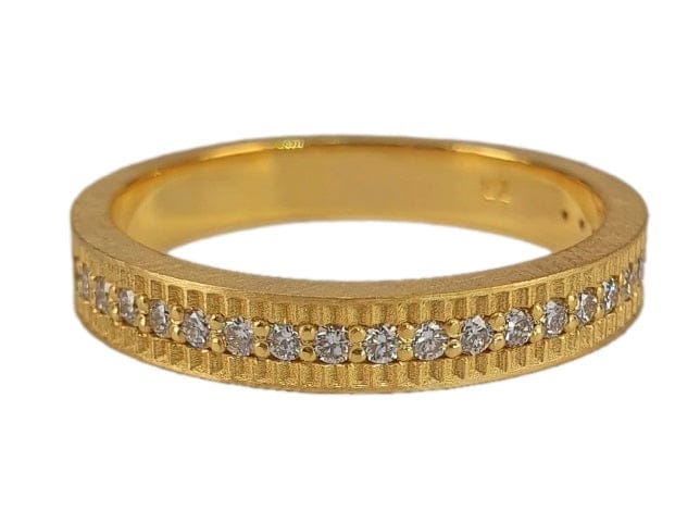 14K Gold Textured Band Ring with Diamond Channel Accents - M9186
