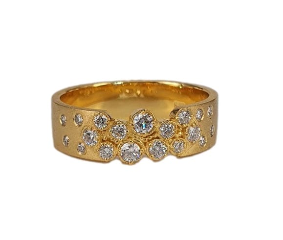 14K Gold Hammered Band Ring with Scattered Diamond Accents - M8843