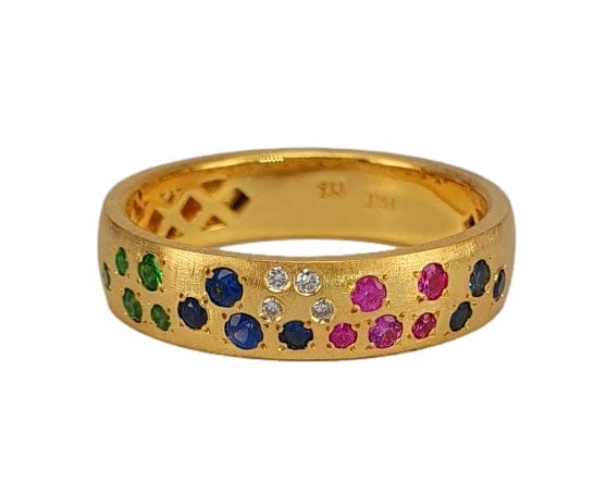 14K Gold Multi-Color Sapphire Band with Diamond Accents - M8873