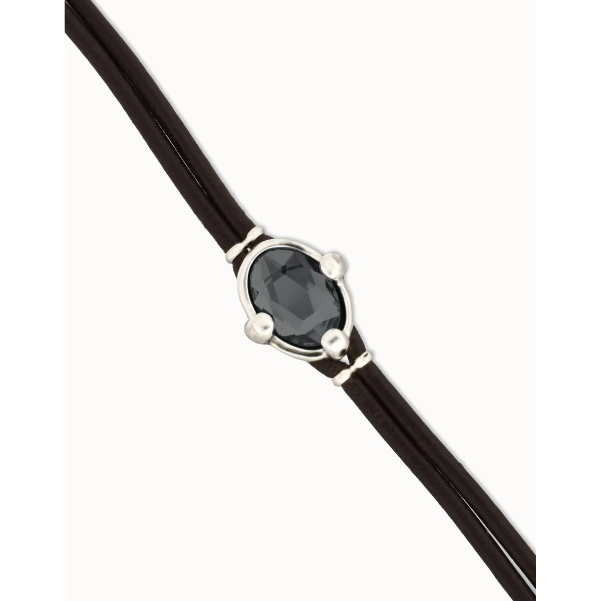 Ser Deslumbrante Faceted Black Oval Crystal Leather Silver Plated Bracelet - PUL2594NGRMTL0M