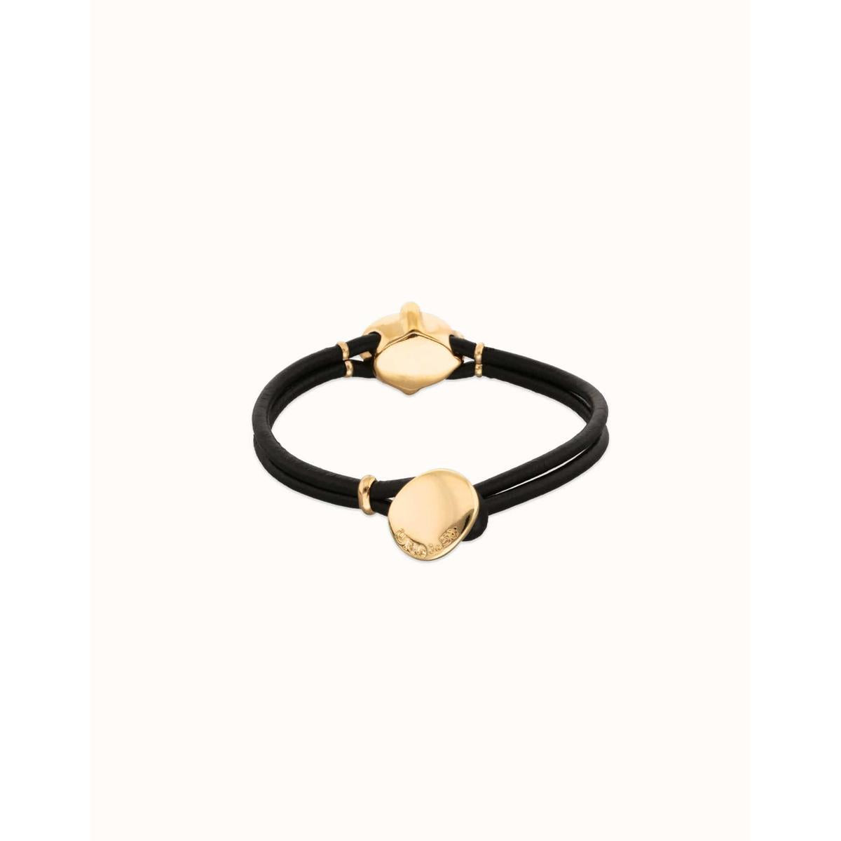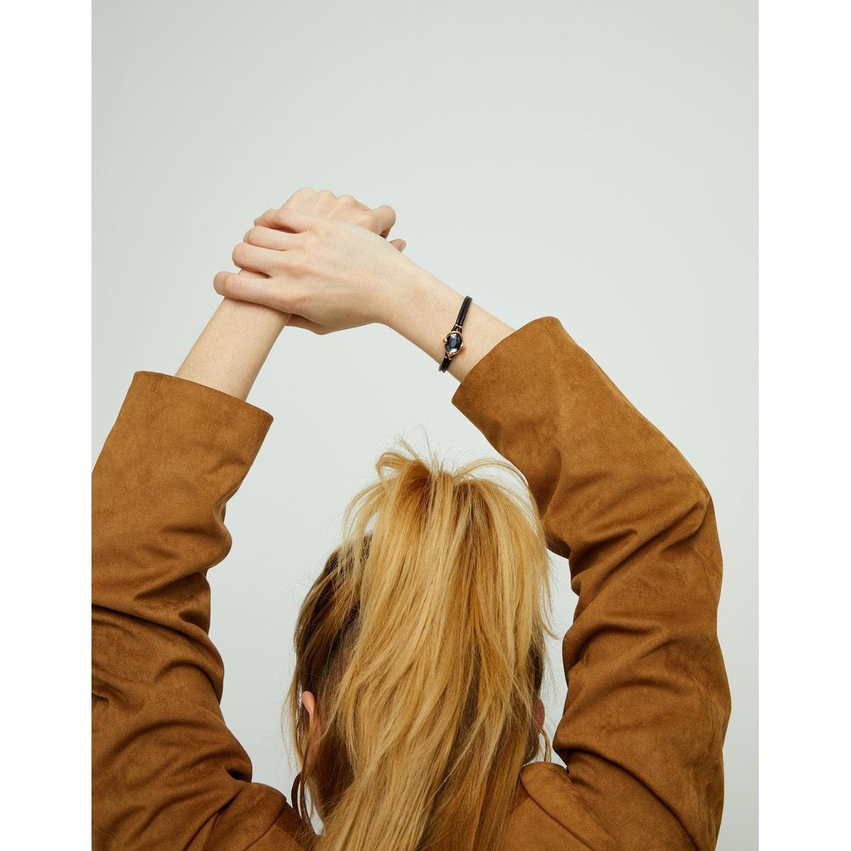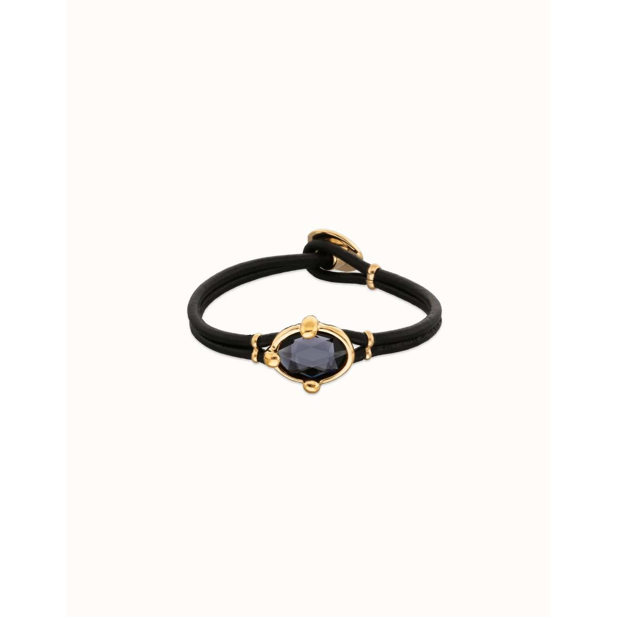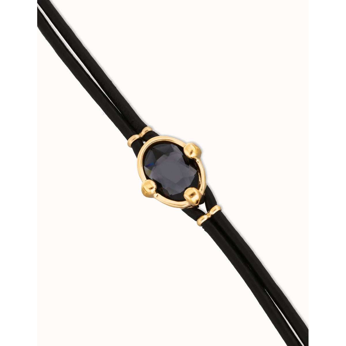 Ser Deslumbrante Faceted Black Oval Crystal Leather Gold Plated Bracelet - PUL2594NGRORO0M